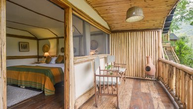 With 20 luxury tents, 2 family cottages and 6 wooden cabins all en-suite built with volcanic stones and timber, overlooking the forest provides unrivaled...