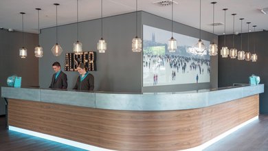 This modern and bright city hotel is located in Bahrenfeld, a district of West Hamburg, just opposite the Trabrennbahn Bahrenfeld race track. Visitors may...