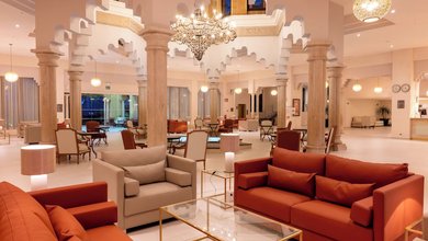 This impressive Arabian-style hotel is located in Punta del Moral and offers colourful rooms with a furnished balcony. Surrounded by palm trees the...