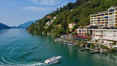 This historical hotel is located by the beautiful banks of the lake, sheltered by Monte Brè and San Salvatore. The villa is located in a former royal...