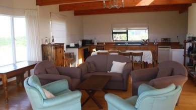 High above the coastline, this large holiday home blends in with the bush and boasts beautiful views of the surrounding mountain side and wild waters of...