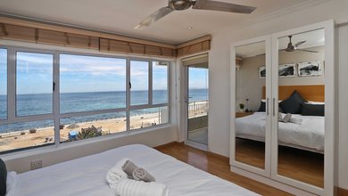 Bright, spacious one bedroom apartment with full bathroom/shower/separate toilet, open plan kitchen. Big bedroom with king size bed. On the beachfront...