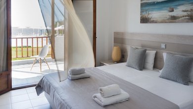This is a simple and bright hotel,built amongst 10.000 square metres of olive trees and gardens.It comprises a cafe,a bar,a restaurant and a T.V room.In...
