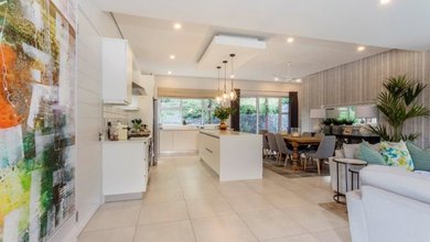 This home offers an open plan layout with differing ceiling treatments, which cleverly outlines the various kitchen, dining and lounge areas.Two of the...