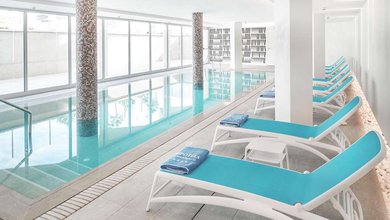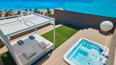 Built around an inviting outdoor swimming pool this suite hotel offers spectacular views over the beach and the Mediterranean Sea beyond – great for a...