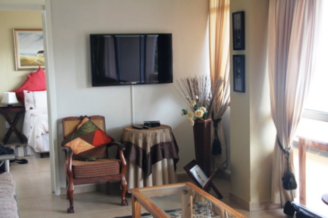 103 Shangri La is a beautiful apartment overlooking Doornside Beach, which is one of the spectacular South Coast beaches. It has a fantastic sea view and beautiful sunrises to see from all the windows.This spacious holiday apartment can accommodate up to six people and comprises two bedrooms, an open-plan kitchen, a dining room and a lounge. The main bedroom has a double bed and an en-suite bathroom. The second bedroom has twin single beds and there is a double sleeper couch in the lounge area. The second bathroom has a shower and we provide all linen.The kitchen is wel
