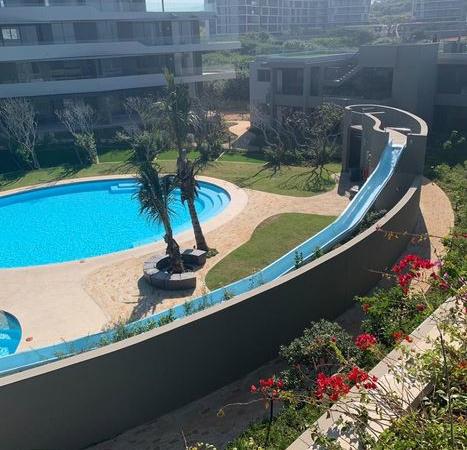 106 Pebble Beach is situated in Umhlanga, 5 kilometers from the heart of Umhlanga Rocks. The apartment can accommodate four people comfortably.This luxury self-catering apartment boasts a lounge and a fully fitted modern kitchen with most amenities, with seating area. There are two double bedrooms with a main en- suite. This modern kitchen is fully equipped with a fridge, under counter oven, microwave, kettle, and gas hob, toaster, as well as a dish washer, washing machine and tumble dryer.Off the lounge are sliding doors into the garden and patio. Sit in o