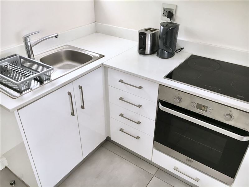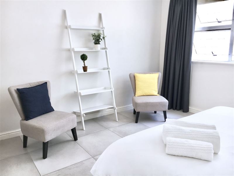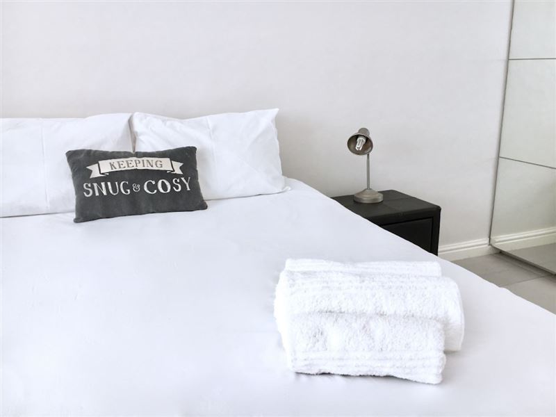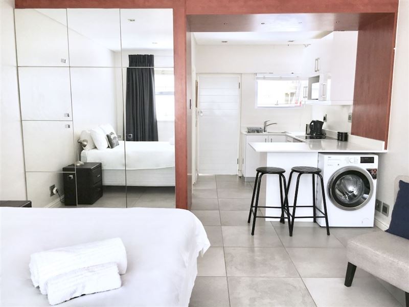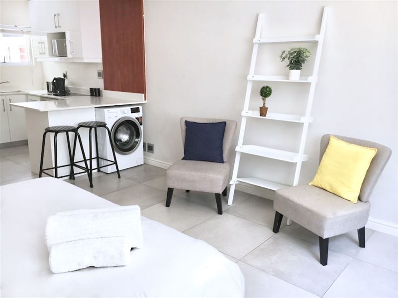 The recently renovated apartment is located in a secure building, in a vibrant suburb. From the road, one enters though the building's main entrance. The apartment (ground floor) is accessed via a shared courtyard.The bedroom is furnished with a double bed. The bathroom comprises a shower, basin and toilet. Towels are provided.The kitchen is equipped with a mini-fridge, a stove with an oven, a microwave, as well as built-in cupboards with pots, crockery and cutlery to make use of. The living / dining area is tastefully decorated with comfortable