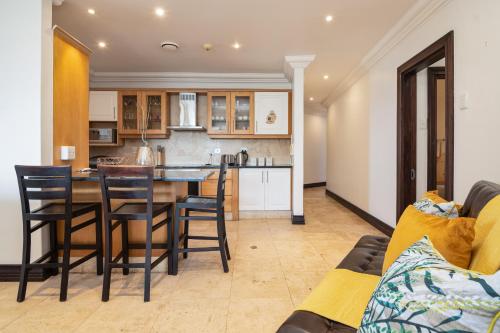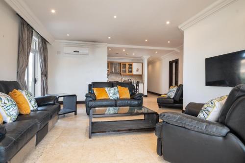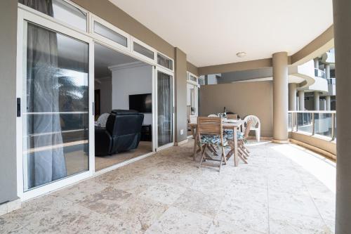 Overlooking the stunning Ballito coastline, 205 Manor View offers a memorable seaside stay to guests visiting this popular part of the Dolphin Coast.This lovely apartment has two bedrooms, of which both have en-suite bathrooms. The open-plan living area has a fully equipped kitchen with a scullery, a dining area and a comfortable lounge leading out onto the balcony.This town is an ideal choice for water lovers as the beach is just a short distance away. Guests can spend their days surfing, swimming or simply just relaxing on the white sandy shores. Guests can also vi