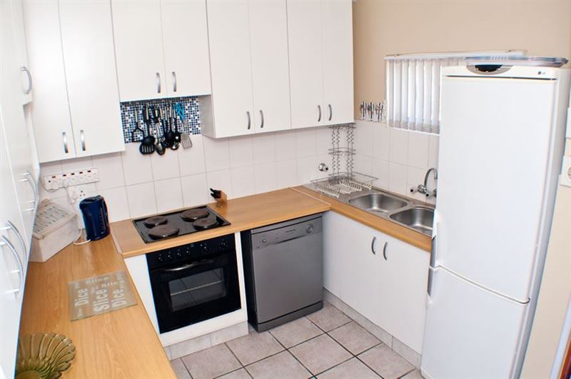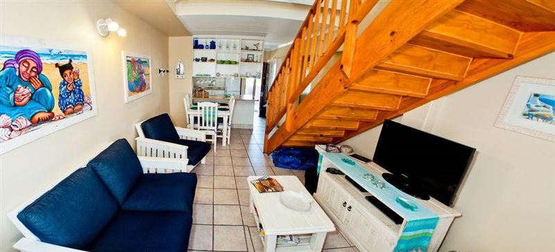 29 Alikreukel is an affordable and comfortable self-catering apartment with sea views, ideally located in the secure Alikreukel complex just 200m from the beach in Hartenbos. It is also 100m from the Atkv centre with shops, restaurants, playpark and indoor swimming pool.The apartment is fully equipped for self-catering and includes 3 bedrooms, 2 bathrooms, a fully equipped kitchen, and a small upstairs kitchenette, and a living and dining room. Two of the bedrooms are downstairs (double beds with fans). The third bedroom is upstairs (2 single beds). The downstairs bathroom has bath and a s