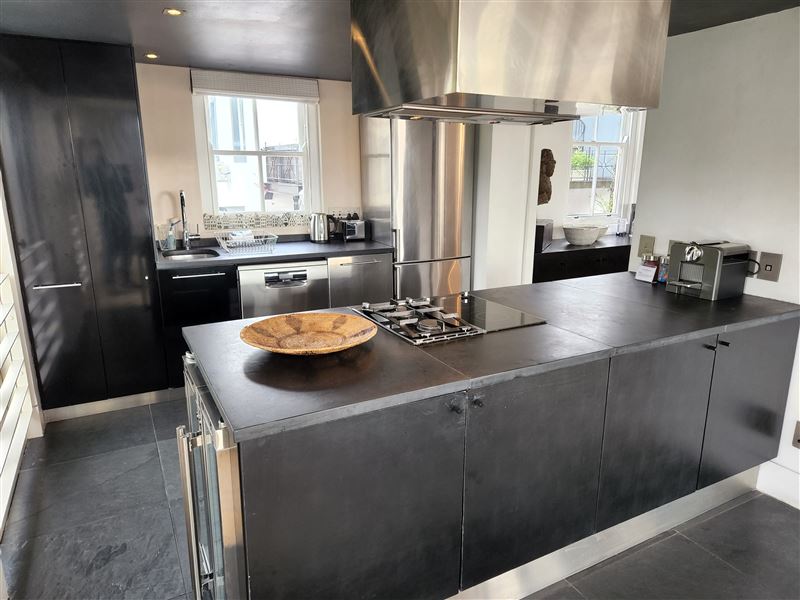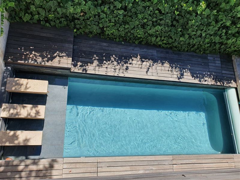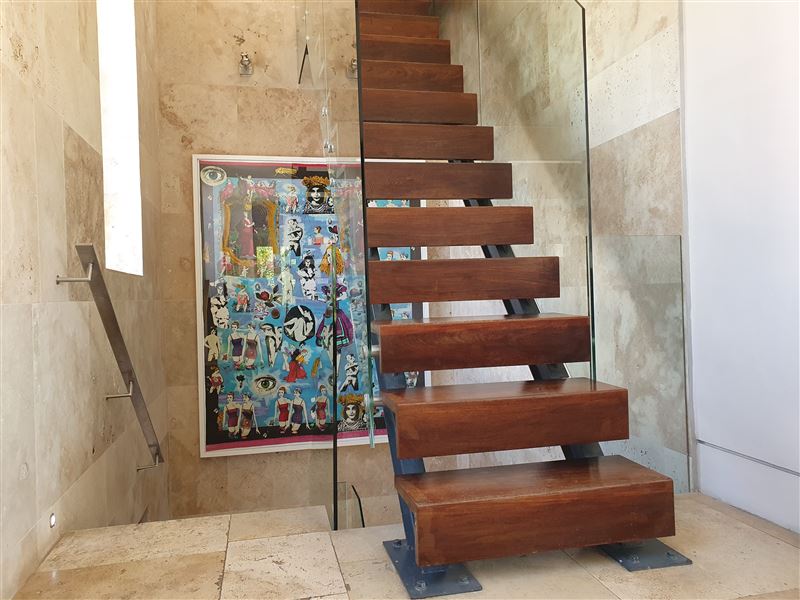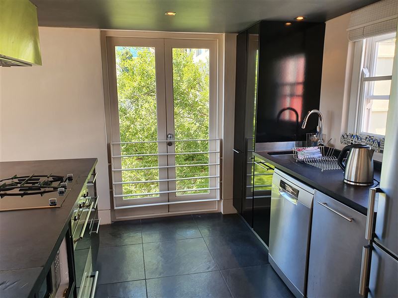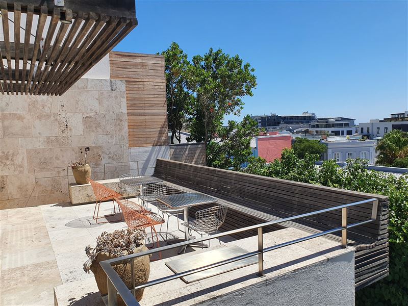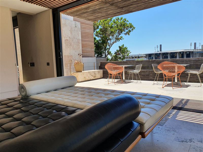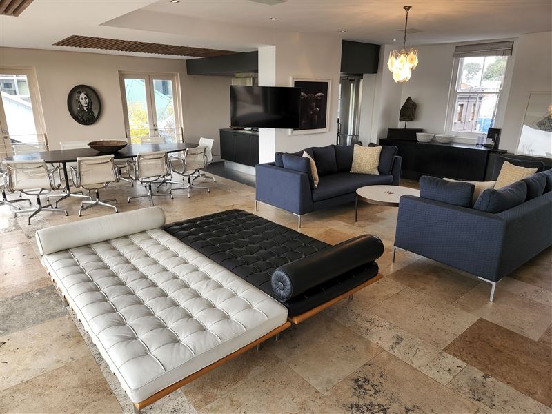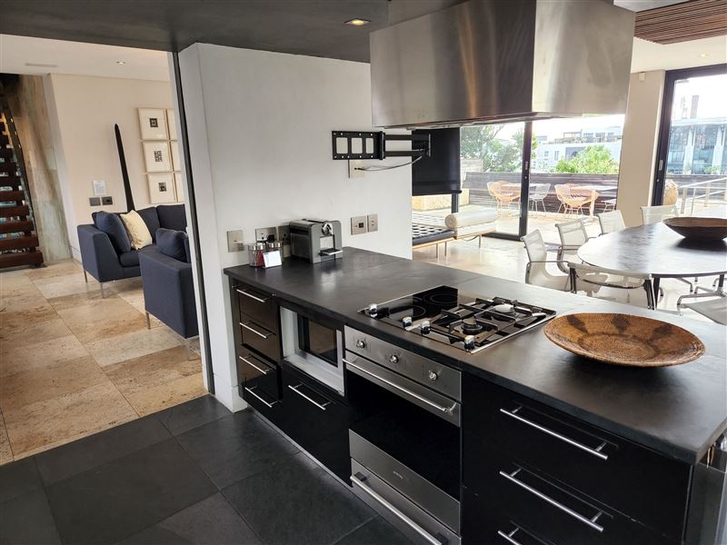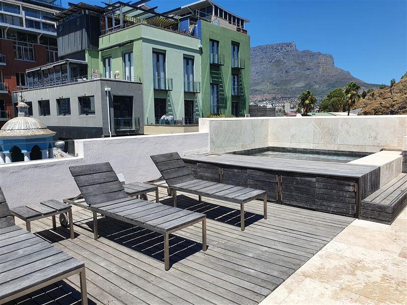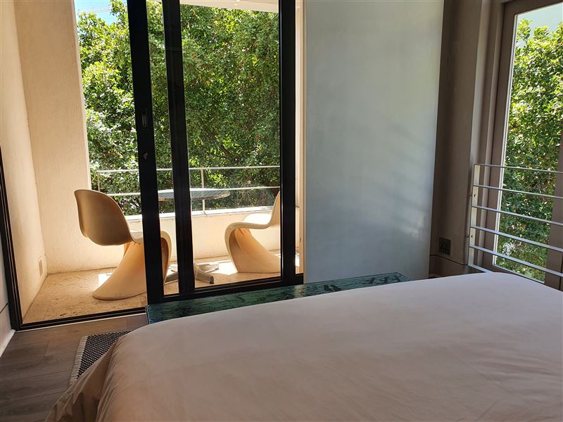 A great house for families or friends, traditional in appearance from the street, this large stylish property has been cleverly designed with massive entertaining space inside and out.You enter into a glamorous hallway with black and white prints. Leading directly off is the air-conditioned master bedroom that boasts a large walk in dressing area with shower and bath. The huge air-conditioned bedroom has bookshelves and sofas surrounding an ornamental stone gas fireplace and suspended television. Sliding floor to ceiling glass doors open onto a private fountain pool that also has Cape Town sky