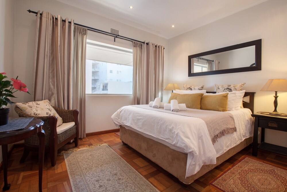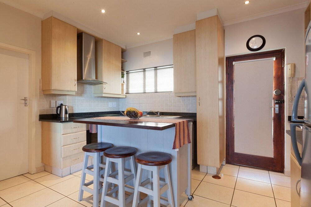 Welcome to this light and bright renovated luxury apartment, with a balcony overlooking the Atlantic Ocean. Located on the Platinum Mile of Mouille Point’s Beach Boulevard, the apartment is fully furnished and equipped, and is within easy walking distance from amenities such as cafes, restaurants, deli's, bus routes and all the entertainment and variety of the world famous V&A Waterfront.The kitchen is beautifully renovated and fully equipped with stainless steel appliances, including a fridge, washing machine and tumble-dryer, a stove with hob and oven, a microwave oven, kettle, t