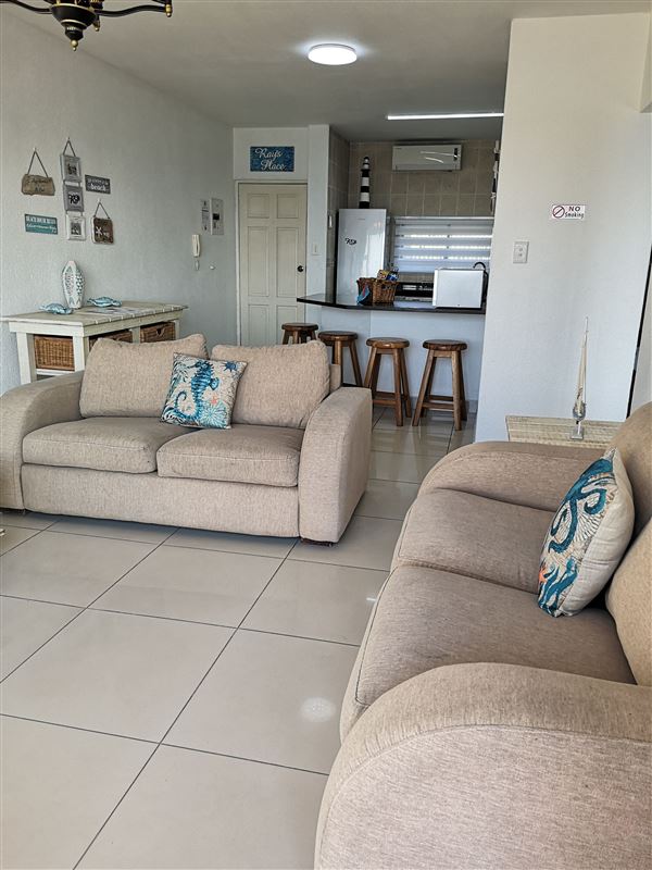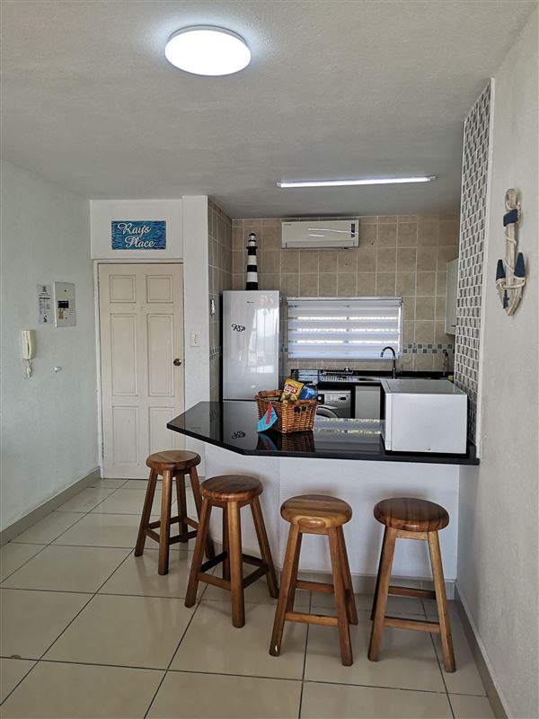 37 Isikhulu is a self-catering apartment located in Umdloti and offers accommodation for the whole family. There is a sea view from the balcony where guests can see whales and dolphins.The apartment sleeps four guests and comprises two bedrooms, one bathroom and an open-plan kitchen and living area. The master bedroom has a queen-size bed. The second bedroom has two single beds and the bathroom has a shower, toilet and basin.The kitchen is fully equipped for self-catering and has a stove, oven, fridge-freezer, microwave, cutlery and crockery. There is a counter with cha