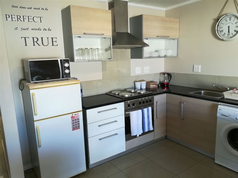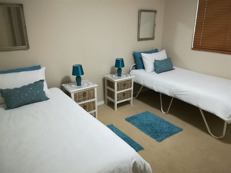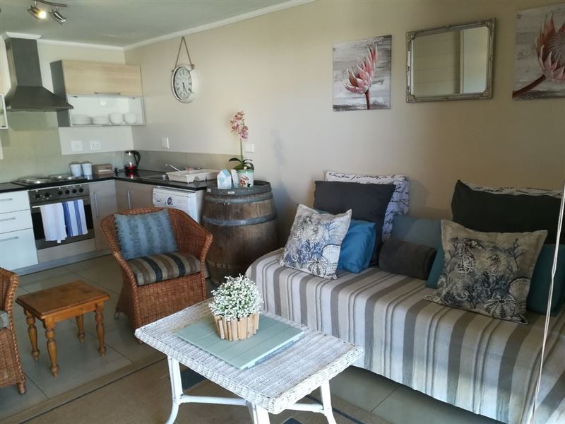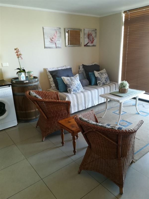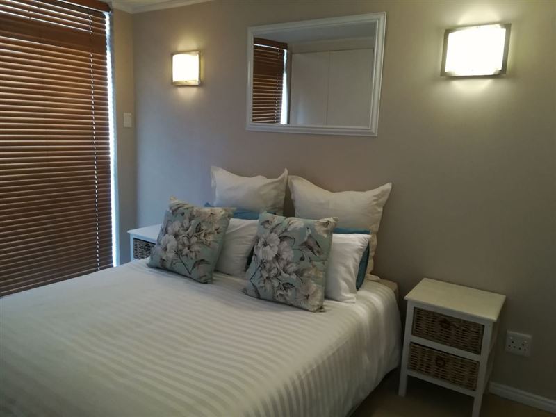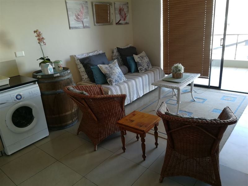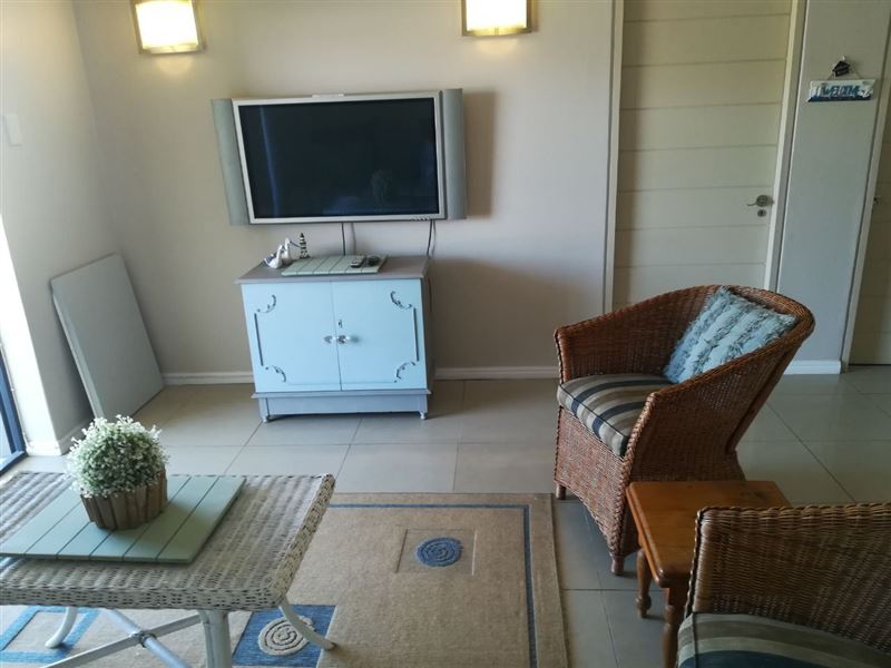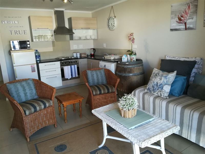 39 Baleana Bay is a comfortably furnished self-catering apartment for four people in Gansbaai.The apartment consists of two bedrooms that share the use of a full bathroom. The main bedroom has a double bed, and opens onto the balcony, while the second bedroom contains two single beds. The open-plan kitchen is equipped with a stove and oven, a microwave, a fridge, as well as tea-and-coffee-making facilities. The lounge is equipped with a TV with DStv, and opens onto a balcony with a gas braai. Safe, undercover parking is provided, and the building has an elevator for easy access.