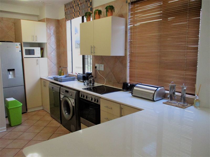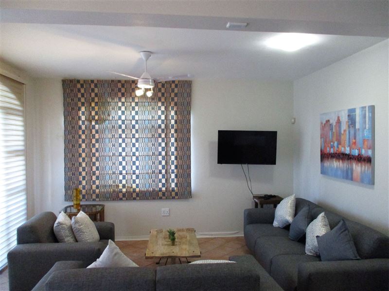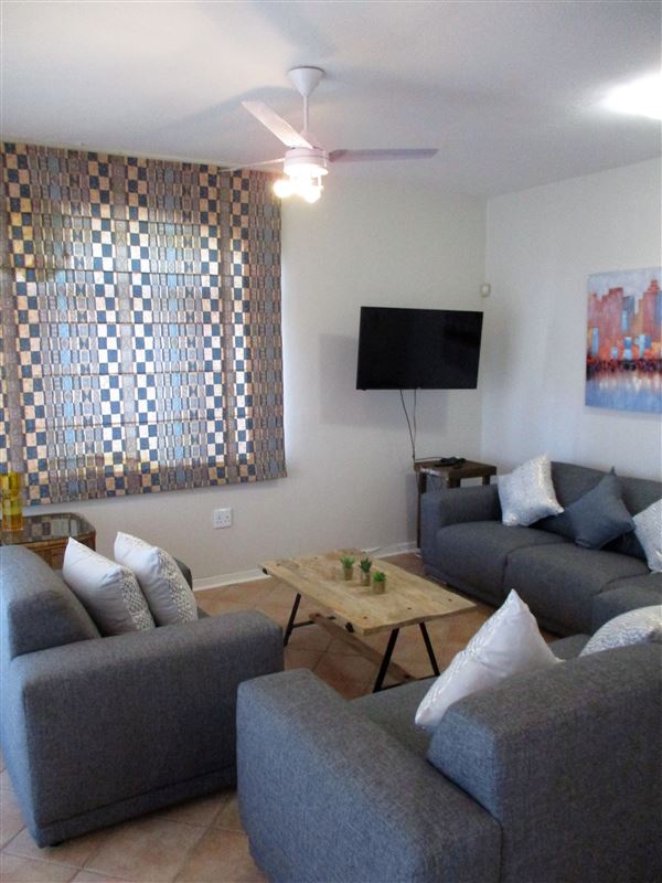 4 Chakas Place offers comfortable self-catering accommodation in a three bedroom beachfront apartment in Shaka's Rock, Ballito.The apartment complex is conveniently located within walking distance of the beach.The apartment has three bedrooms, two bathrooms, one of which is en-suite, a kitchen, a living area and a dining area. The first bedroom has a king-size bed and the second and third bedrooms each have two single beds. The kitchen is equipped for self-catering with a fridge-freezer, stove, oven, microwave, washing machine and dishwasher. The lounge has
