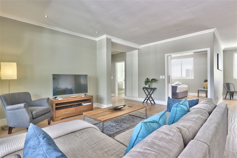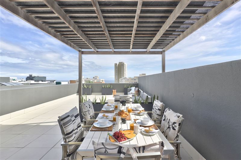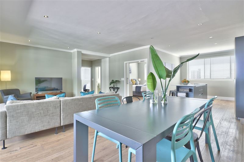 403 The Address offers cosy self-catering accommodation in a tastefully furnished apartment in The Address apartment block in the heart of Sea Point. It is ideal for business and leisure travellers alike.This apartment comprises three bedrooms, two bathrooms and an open-plan kitchen, living area and dining area. The first bedroom has a king-size bed and an en-suite bathroom with a shower, double basin and bath. The main bedroom has ample closet space as well as air-conditioning. The second bedroom has a queen-size bed and the third bedroom has two single beds. The second and third