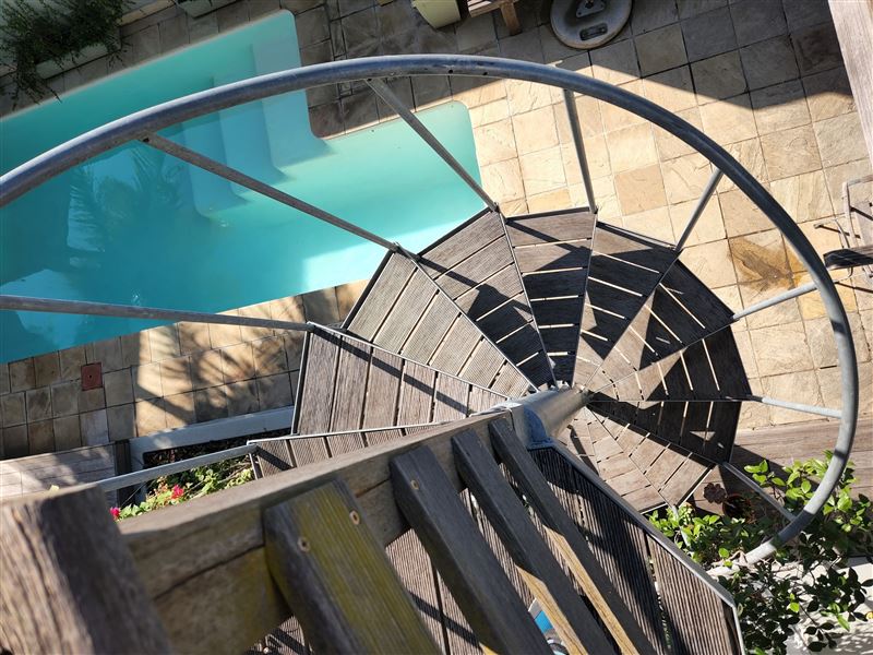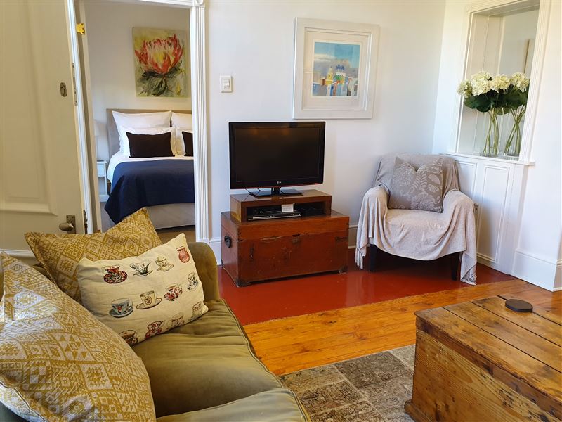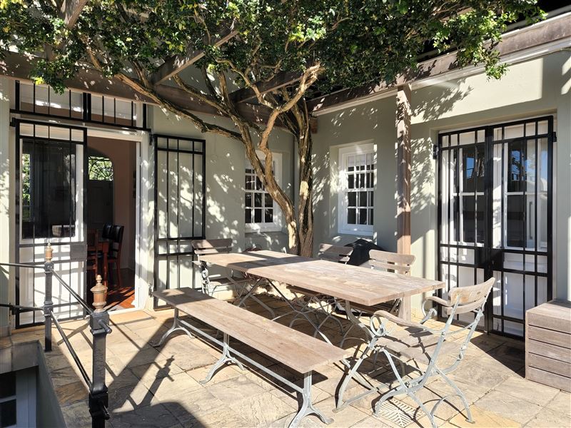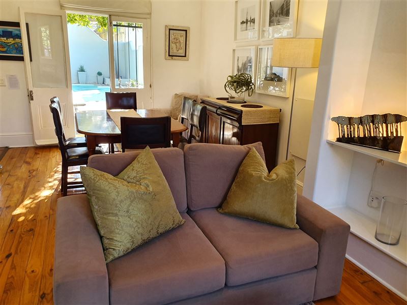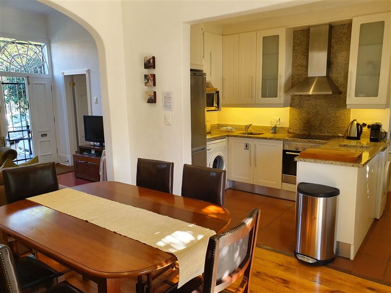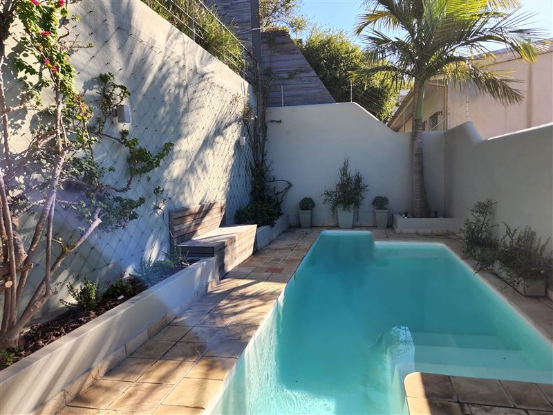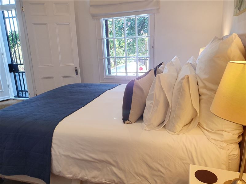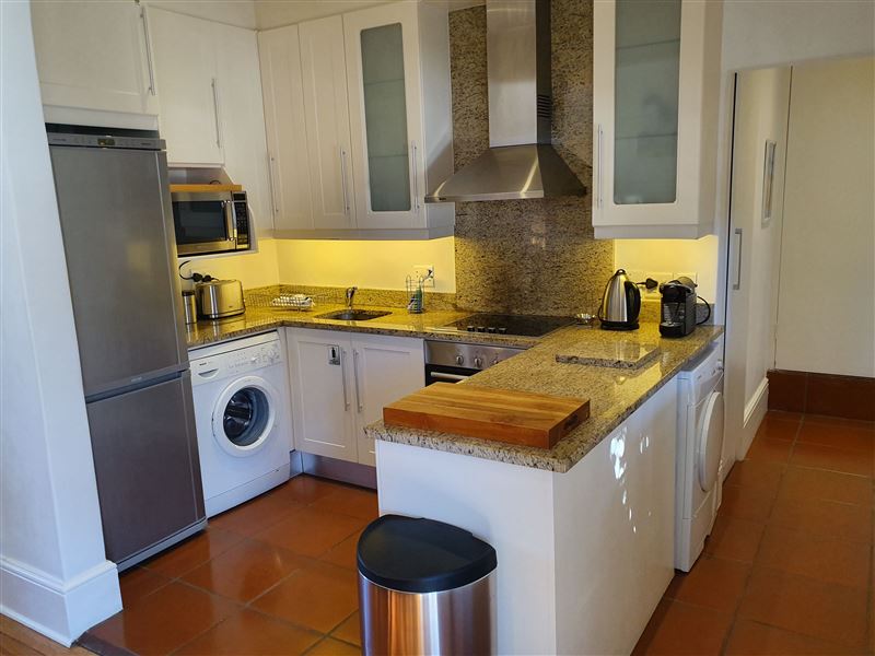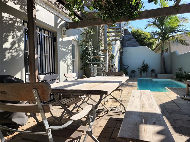 With its great location on the cobbled section of Napier Street this property boasts one of the largest pools in the area.This luxury two bedroom property has an open plan living & dining area and kitchen with wooden floors and ornamental fireplace. The air-conditioned front queen sized bedroom with en-suite bathroom has a shower and a bath whilst the second air-conditioned queen bedroom has an en-suite with shower; doors from the bedroom open directly out onto the private pool terrace area. This area with shaded table and seating looks across the solar heated pool and a spiral staircase leads