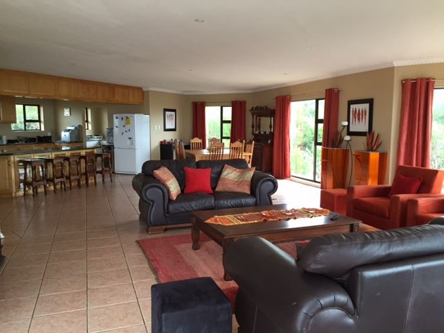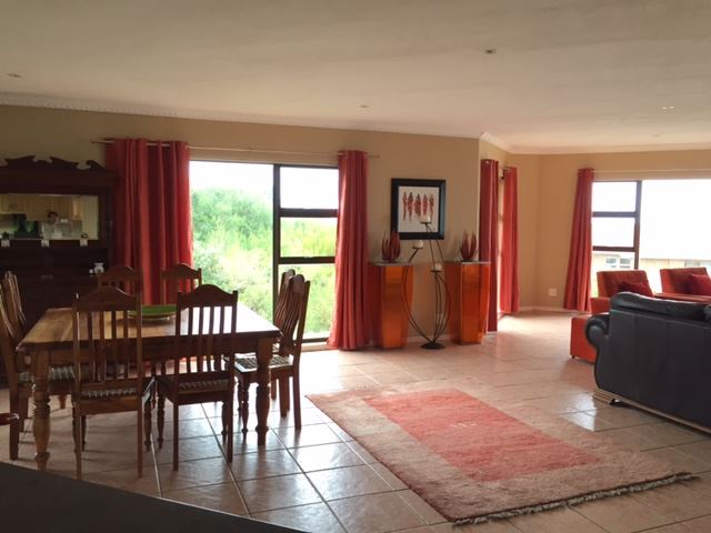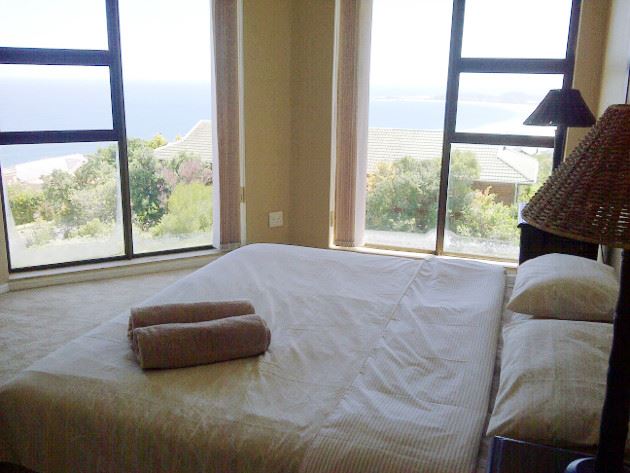 This is a spacious self-catering house with a beautiful view of the sea. Situated in the resort town of Brenton-on-sea, close to a Blue Flag beach, it is the ideal spot for a family holiday.There are four bedrooms and three bathrooms upstairs, as well as a comfortably furnished lounge. There is a fully equipped kitchen with a scullery, a dining area and a balcony with built-in braai facilities. Downstairs there is a self-sufficient apartment that comprises two bedrooms, a lounge area and a fully equipped kitchen.The house has an alarm system and there is a double lock-u