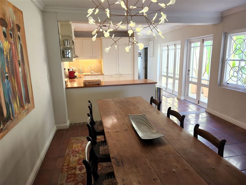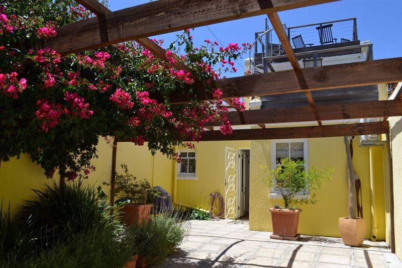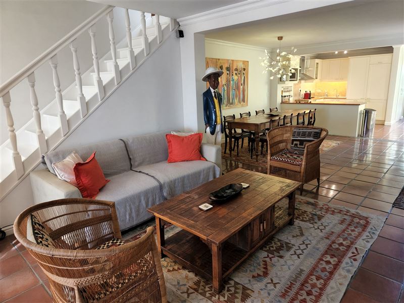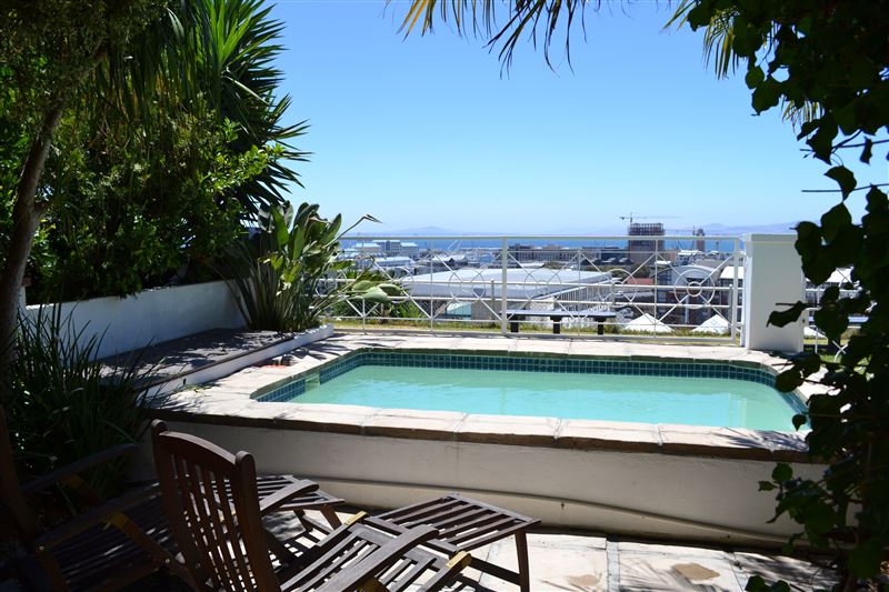 A perfect property for families or groups this large traditional property boasts one of the best locations in the village with three bedrooms, garage, pool and amazing views.Spanning from Loader Street across to Bayview Terrace you enter via the garage area. The expansive open plan ground floor has a fully fitted kitchen and dining area with small courtyard. The living room area with ornamental fireplace opens out onto the garden with seating, sun loungers and plunge pool that looks across the Harbour and Table Bay. The ground floor also has an air-conditioned twin or king bedroom with separat
