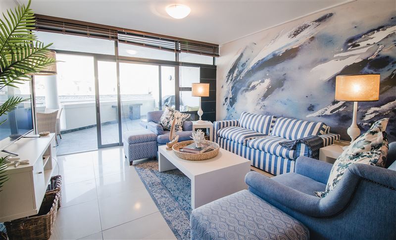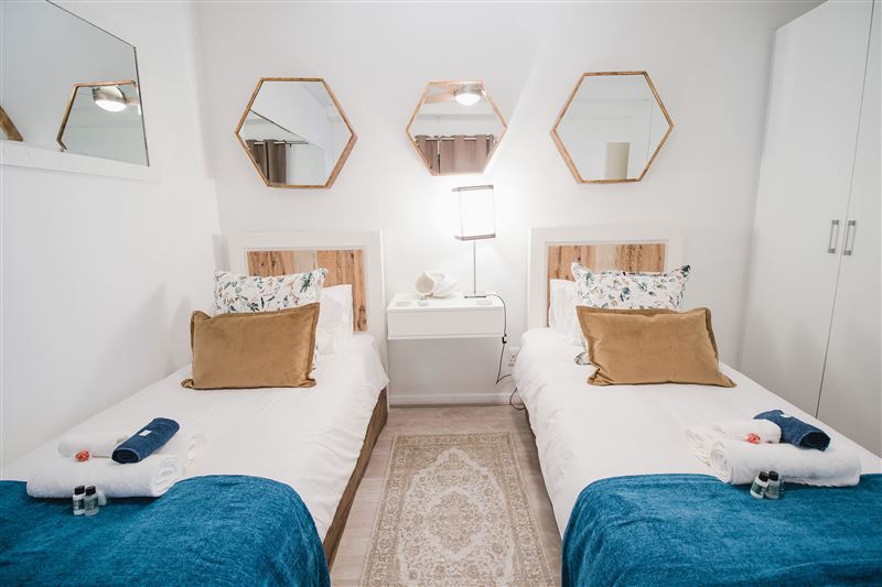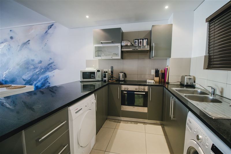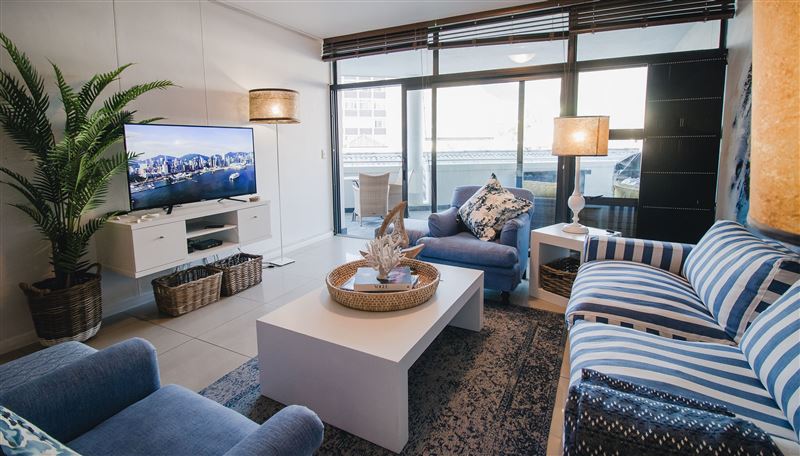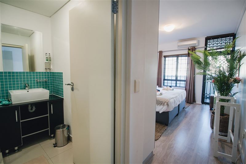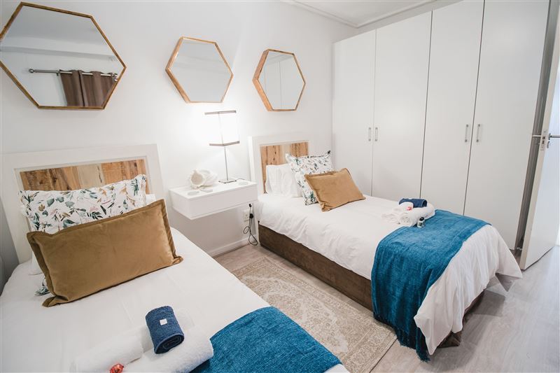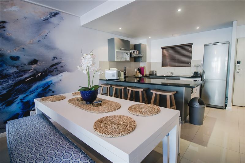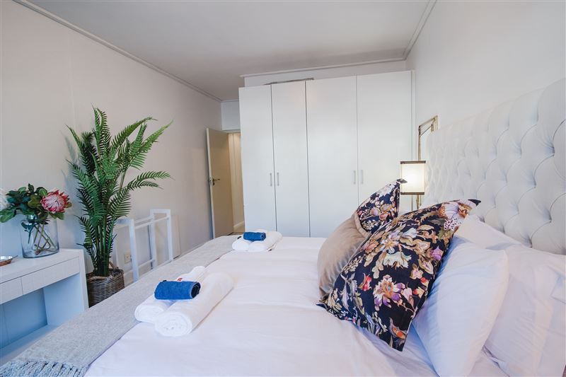 502 Flatrock is based in the heart of Cape Town and offers upmarket accommodation for four guests wanting to venture into the city and relax in style.The apartment is composed of two majestic bedrooms; one with a king-size bed and the other with two single beds. The bedrooms have luxury linen, carpeting, mirrors and air-conditioning.One bedroom is equipped with an en-suite bathroom featuring a shower and the second bathroom has a bath. Both bathrooms have been beatifically tiled and offer luxury toiletries.The immaculate fully-equipped kitchen has st