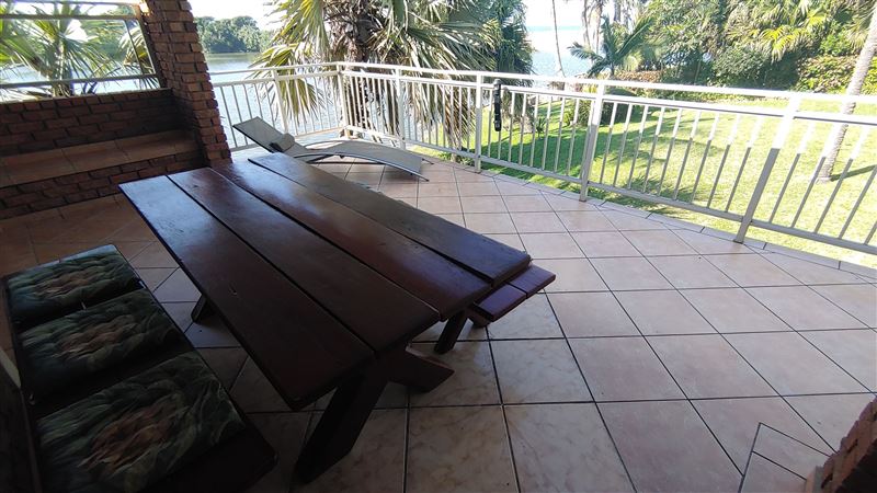 Enjoy your morning coffee overlooking the lagoon and the Indian Ocean, OR pour your sun-downers with your braai on the covered patio whilst admiring those views.This lovely cottage, right on the water is as close to the lagoon as you are going to get. Situated at the very front of the property, edging the water, it is suitable for 1 family of 6. “The Boat house” and “The Flat” at 53 Nkwazi Drive are on the same property and share a pool. The Boat house offer direct lagoon and beach access. The property does not offer garages, but does have secure open parking. The property is secur