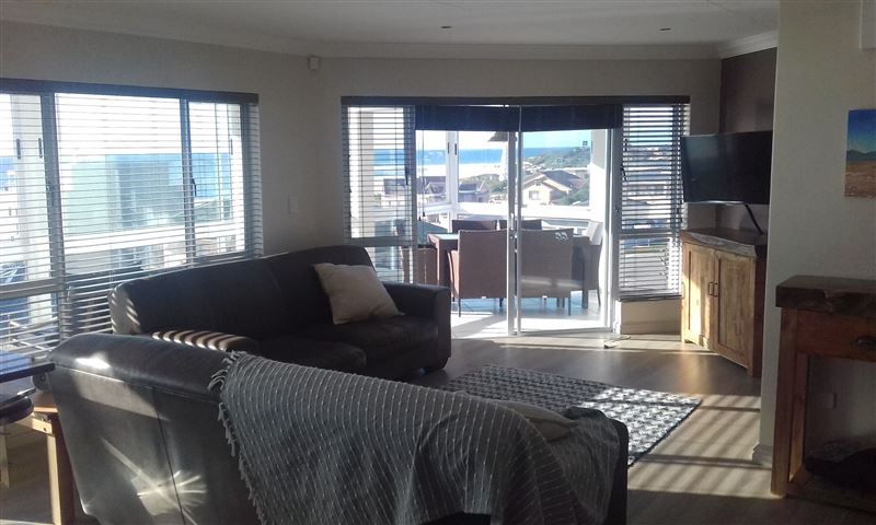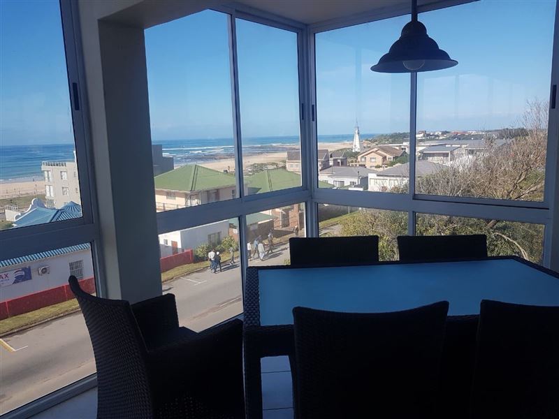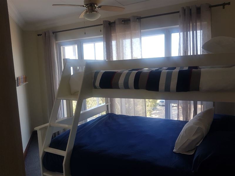 A stunning apartment boasting stunning sea views, 55 Neptune's Terrace is a self-catering holiday apartment located in the coastal area of Jeffreys Bay.The apartment comprises two bedrooms, the main bedroom is composed of a Queen-sized bed and second bedroom with a double bed as well as a single bunk bed. The bathroom comprises a shower, bath, toilet, and basin and there is an additional guest toilet. There is a fully equipped kitchen and breakfast island with granite tops. The apartment offers a fully enclosed veranda with sliding doors, that wrap around the entire bu