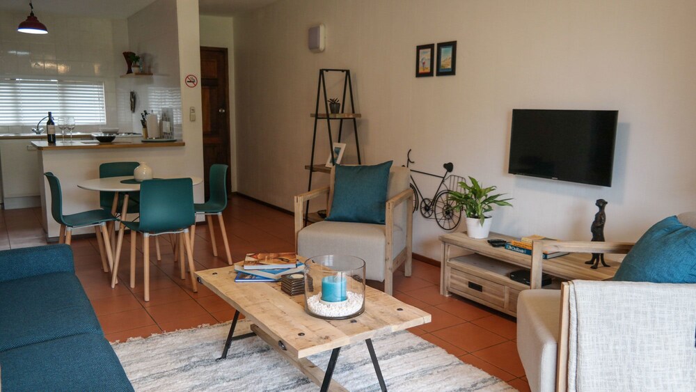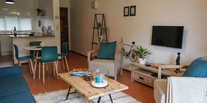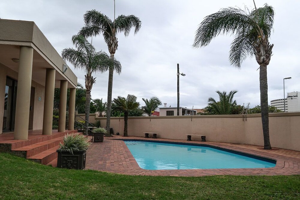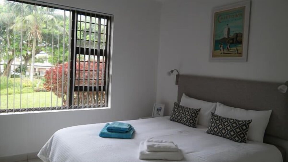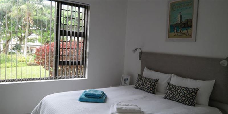 Conveniently situated in Umhlanga, across the road from the main Umhlanga swimming beach. The ground floor apartment has two bedrooms, the main has a queen-size bed and the other bedroom has two single beds. The en-suite bathroom has a shower and the second bathroom has a bath and shower.The kitchen is well equipped with a large fridge but no washing machine and tumble drier, there is however a communal laundry in the building. The living area comprises a dinette area and a comfortable lounge with flat screen TV, including DStv access, which leads on to the balcony and garden. You