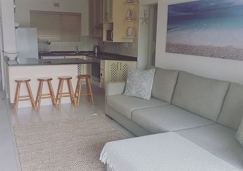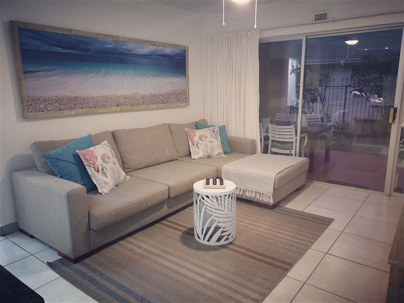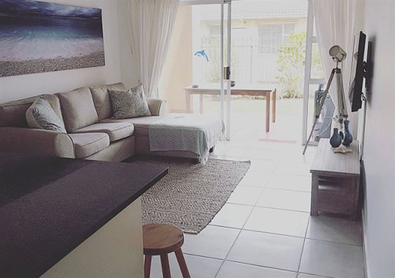 57 Ramsgate Palms is a fully equipped, self-catering apartment conveniently situated within walking distance to Ramsgate's Blue Flag beach. The apartment is comfortable and has high-quality finishes, sleeping up to five people. There is one bedroom that is equipped with a queen-size bed and an en-suite bathroom, and another room that contains one tri-bunk bed; with a double bed at the bottom and one single bed on top. The lounge features a 49 inch flat-screen TV, DStv, a DVD player, and leads to a patio and an enclosed garden. In addition, a portable Weber braai facilit