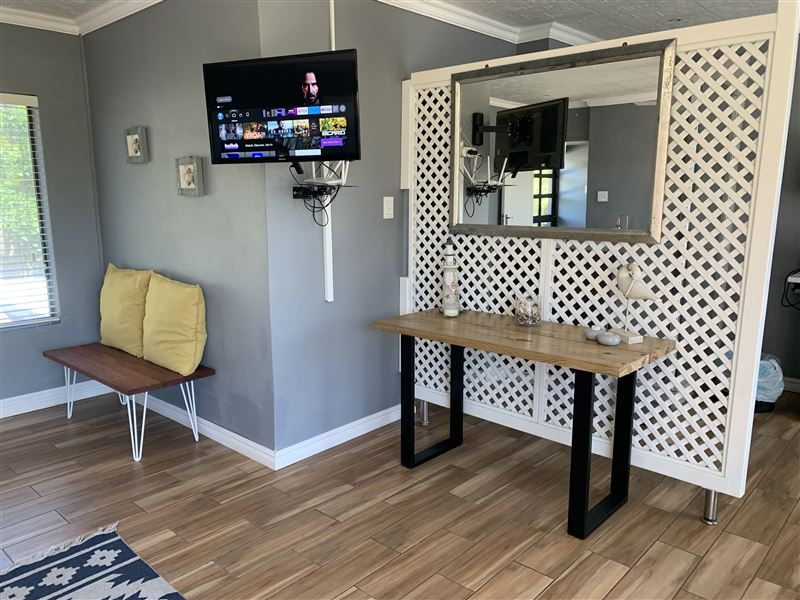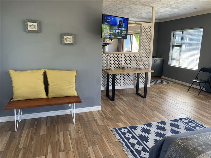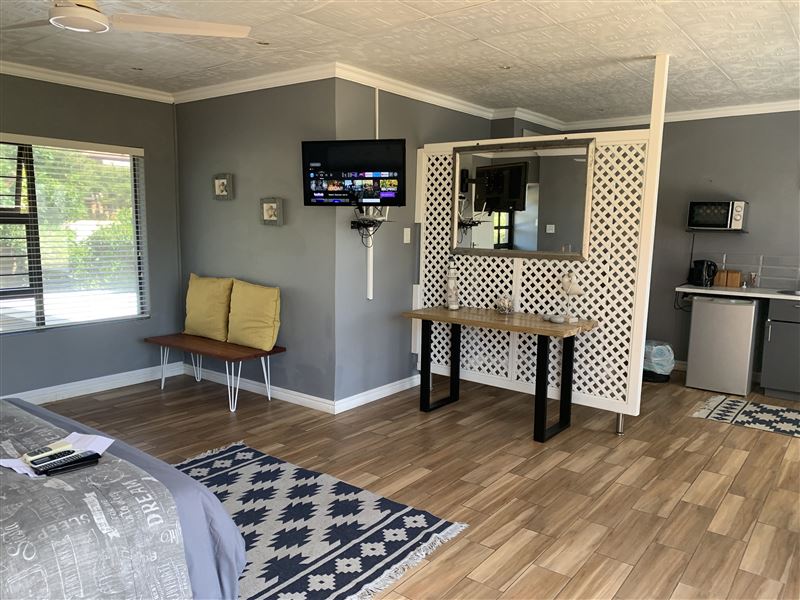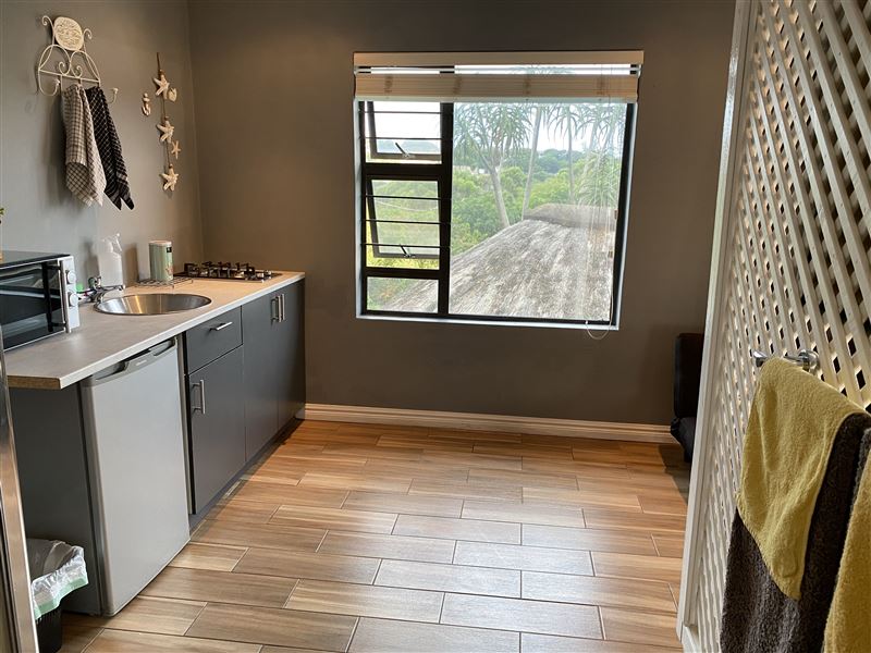 59 on Gail is situated in the picturesque area of Sheffield Beach, along the spectacular subtropical Dolphin Coast.The accommodation comprises of an open-plan room, with a private entrance, which features a queen bed, an en-suite shower with a separate toilet, a couch with DStv, a workstation, a refreshment bar, and outstanding views. The abode also offers guests Wi-Fi Internet access, braai facilities, and parking on the premises.Guests can revel in many great attractions that the Dolphin Coast has to offer, such as the striking beaches, the Harold Johnson Nature Reserve, and the Princes Gran
