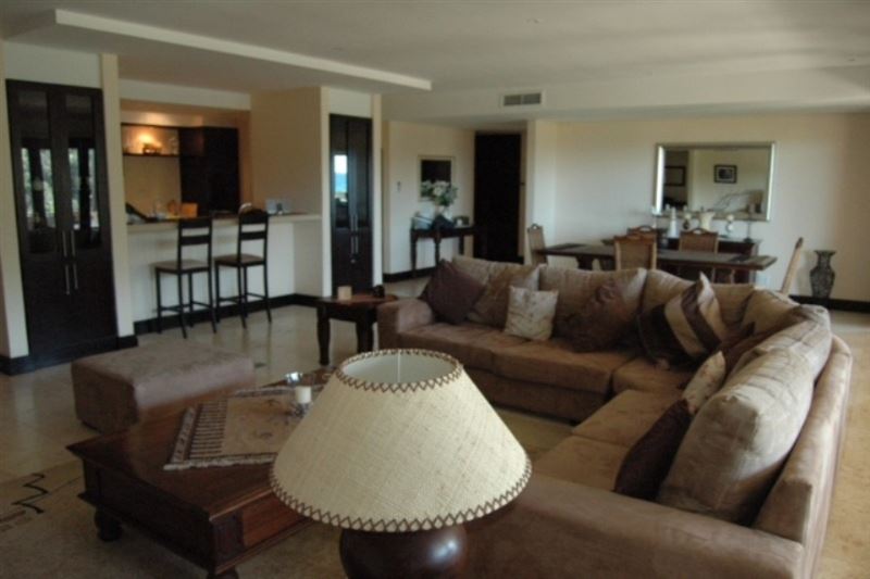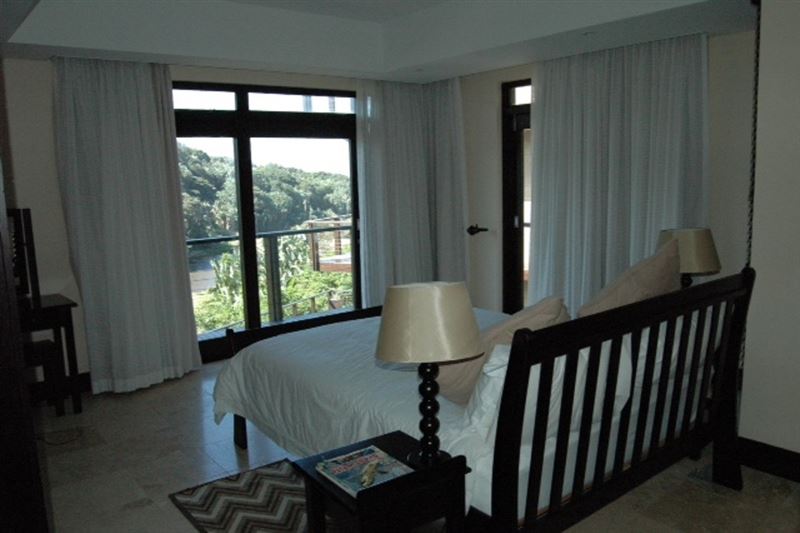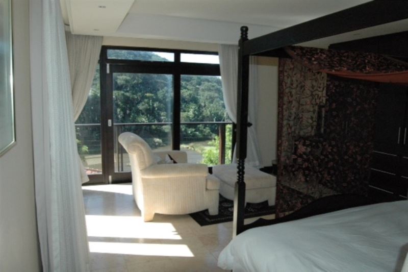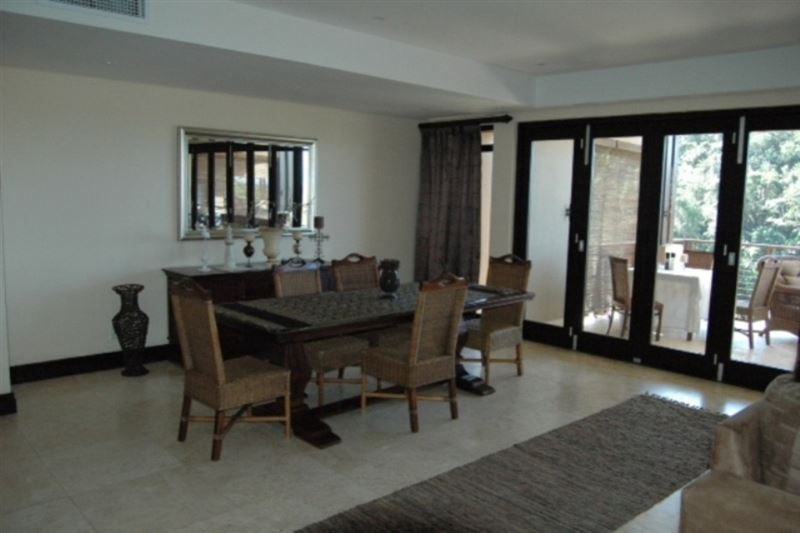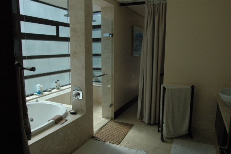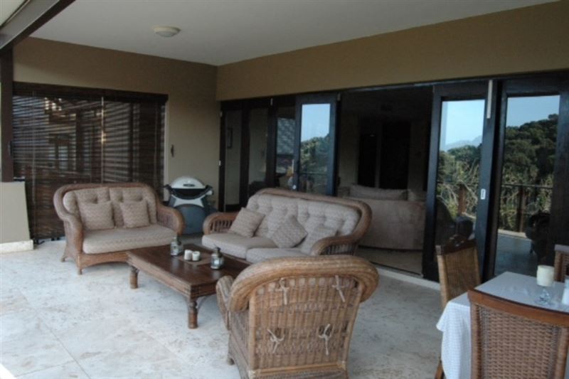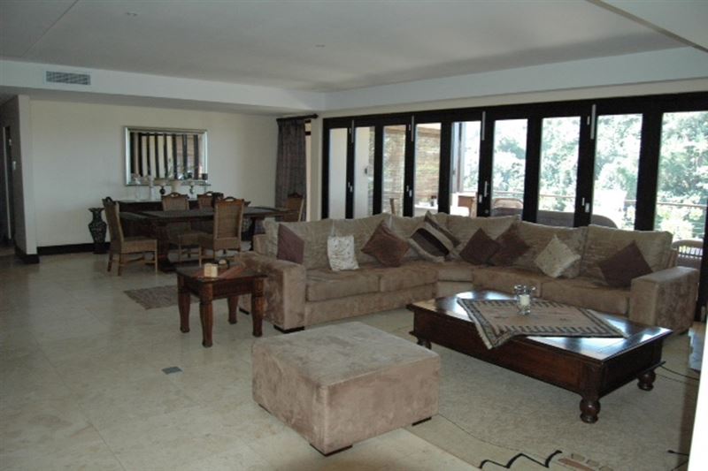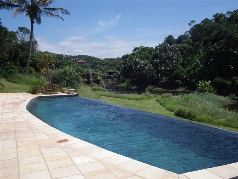 5 Imbali Lakes is a luxury apartment offering breathtaking views of the sea, forest and waterfall.The house has four air-conditioned bedrooms with en-suite bathrooms. The modern kitchen is equipped for self-catering and entertainment and the lounge has comfortable couches and a TV with DStv. The lounge leads onto the patio. The covered verandas have lovely views including a stunning swimming pool surrounded by green lawn. A double garage is available for guests to use and the accommodation is serviced on weekdays.The pristine Zimbali environment has endless golden b