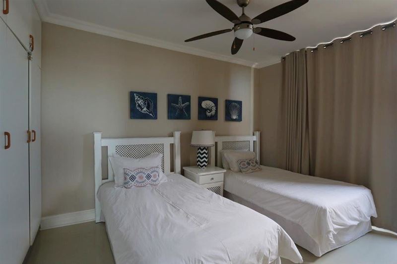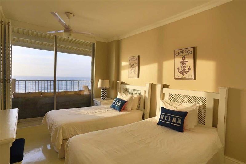 602 Marbella is a beautifully renovated, fully furnished 3 bedroom self catering beach apartment with the most stunning large balcony boasting sweeping views of the magnificent KZN coastline.The kitchen is open plan and fully equipped with a dishwasher, granite tops and a breakfast bar that opens onto the living room. The lounge opens up onto the balcony with sea views & has a wall mounted flat screen TV which is equipped with DSTV. There are three bedrooms which are beautifully decorated with built in cupboards. The main bedroom has a king size bed and opens out onto the balcony w