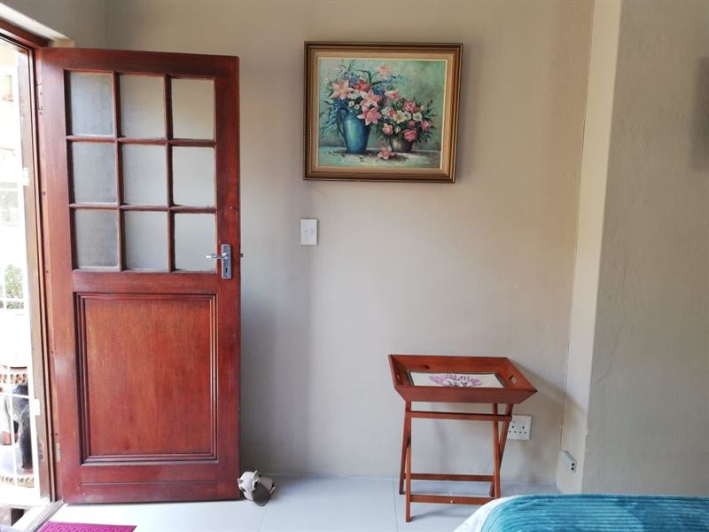 7 on Glindon is a lovely self-catering unit accommodating two guests. The accommodation is attached to the main house and has its own private entrance.The unit boasts with a separate bathroom with a shower and the kitchen is equipped with a two-plate stove, a microwave, a fridge, and other amenities. The bedroom has two three-quarter beds, a dining area, build in cupboards, television, and DStv. Secure parking is available inside the property and 24-hour security camera. The smoking area is situated outside and there is a dog and cat on the property. The outside braai area is avai