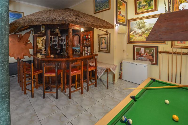 This is a lovely guest house with beautiful views of the Klein Swartberg Mountains, situated in Ladismith and centrally located on the well-known Route 62. Your hosts, Marthie and Frederik Saaiman, will make you feel right at home and ensure a wonderful stay.We offer five comfortable bedrooms, four with en-suite bathrooms and one separate bathroom. Each room has a private entrance and is equipped with a TV and tea and coffee facilities.Facilities in the guest house include an indoor braai area, a bar, a pool table as well as hundreds of beautiful paintings to admire.