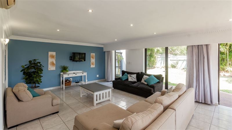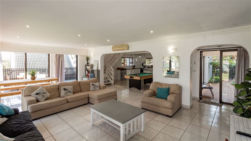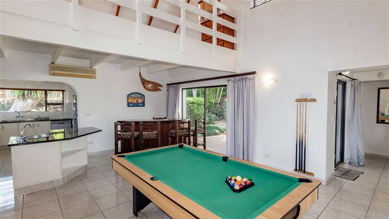 8 Artego Bay is a cosy little townhouse nestled in the midst of lush gardens, overlooking the viridescent cane fields, on a large piece of property. The spacious unit is fully air-conditioned and comprises an open-plan kitchen, dining room, a lounge and bar area. All rooms are fitted with three standard-sized double beds, en-suite bathrooms, ceiling fans and built-in cupboards. The loft above the kitchen area is composed of two sleeper couches suitable for two children under the age of 12.The kitchen is fully-equipped with all the necessities ensuring guest experience n