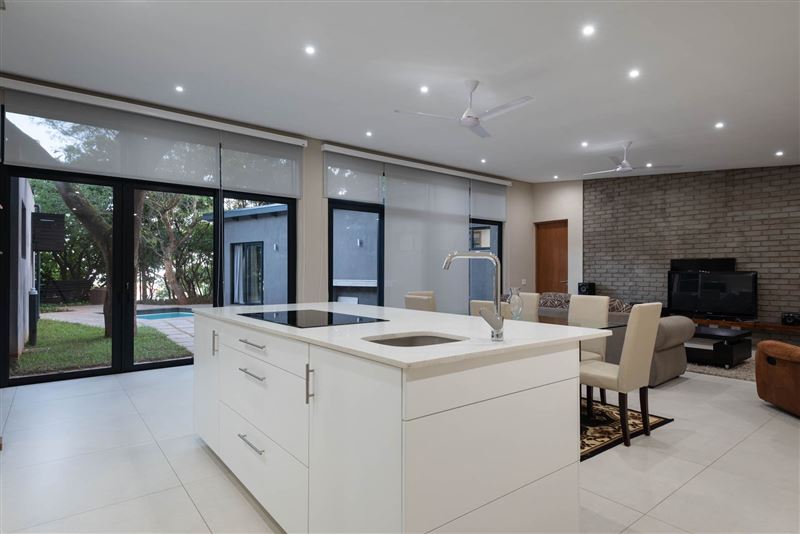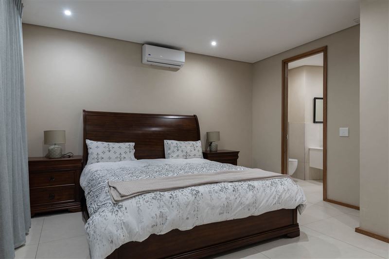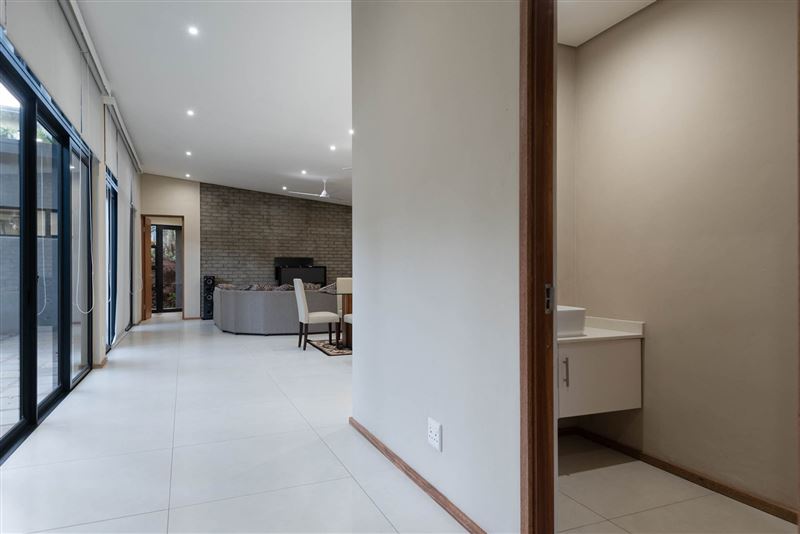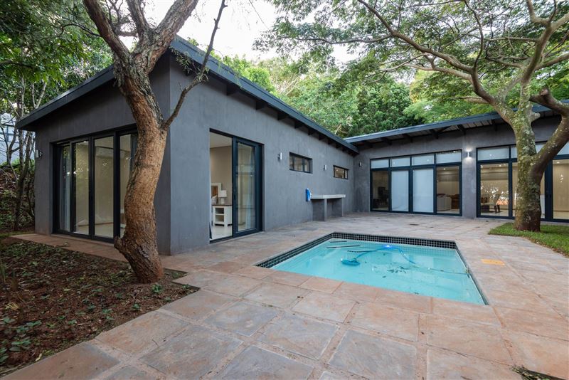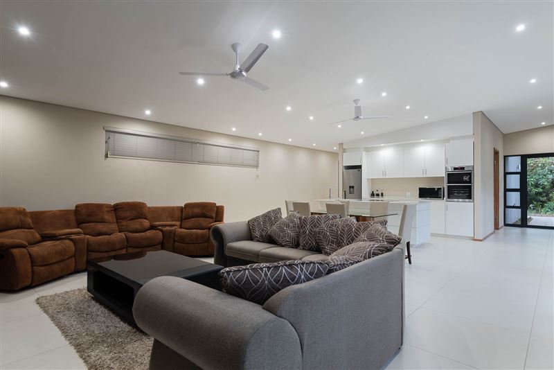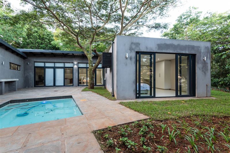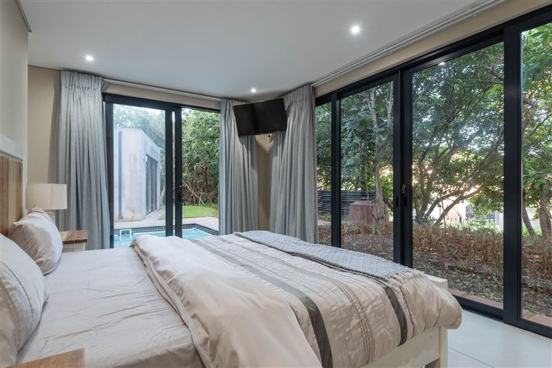 This gorgeous, newly built home is available to holiday let.Situated in the peaceful Zuleni Private Estate in Ballito and offers security and peacefulness. With only 10 houses on the estate you can relax in true tranquillity.The home offers 4 bedrooms, all en suite, an open planned, fully equipped kitchen with gas hob and scullery, dining room and lounge. There is full DSTV as well as Wi-Fi. Lounge opens out to a private courtyard with swimming pool and distant ocean views. Double garage with parking up to 3 vehicles in the driveway.Unit is servi
