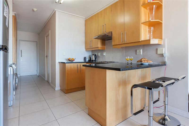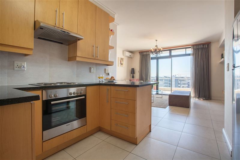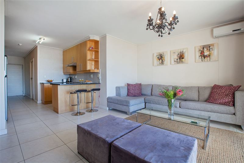 905 Dockside is situated within the central hub of the De Waterkant village, well-known for its excellent restaurants and nightlife. The apartment, which has one bedroom, comprises an open-plan kitchen and living room, with a balcony overlooking the harbour and city. The kitchen is fully equipped with a fridge, stove, microwave oven, kettle, toaster and coffee-maker, as well as a full range of crockery and cutlery. A double sleeper couch in the living room offers additional sleeping arrangement. The complex also features a laundromat, a pool and gymnasium, as well as ample visitors