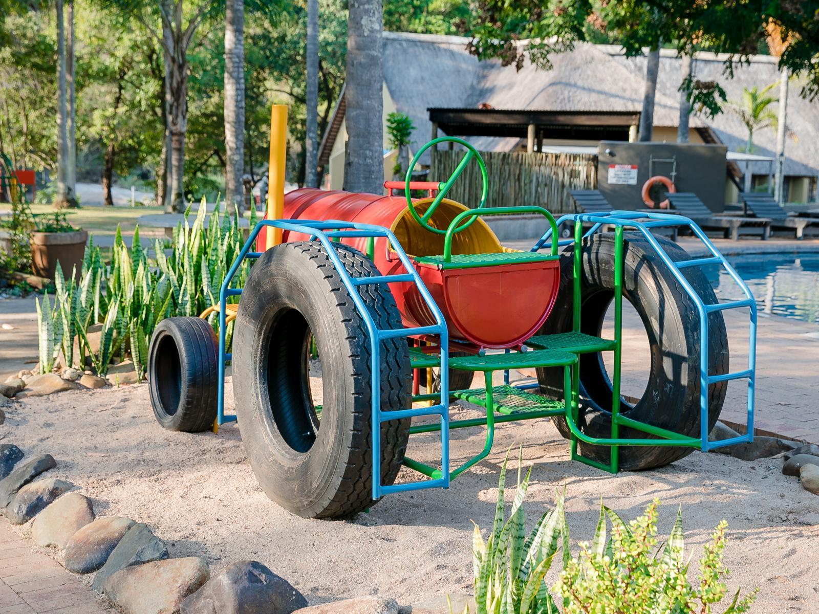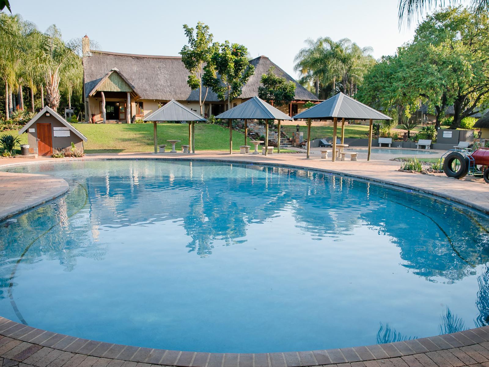 2 Swimming Pools - Main and Toddler's pool. Kiddies play ground area with trampolines, swings and play park equipment. Lots of picnic spots next to the Sabie River. Volley ball and Table tennis. Lush lawn and beautiful gardens.