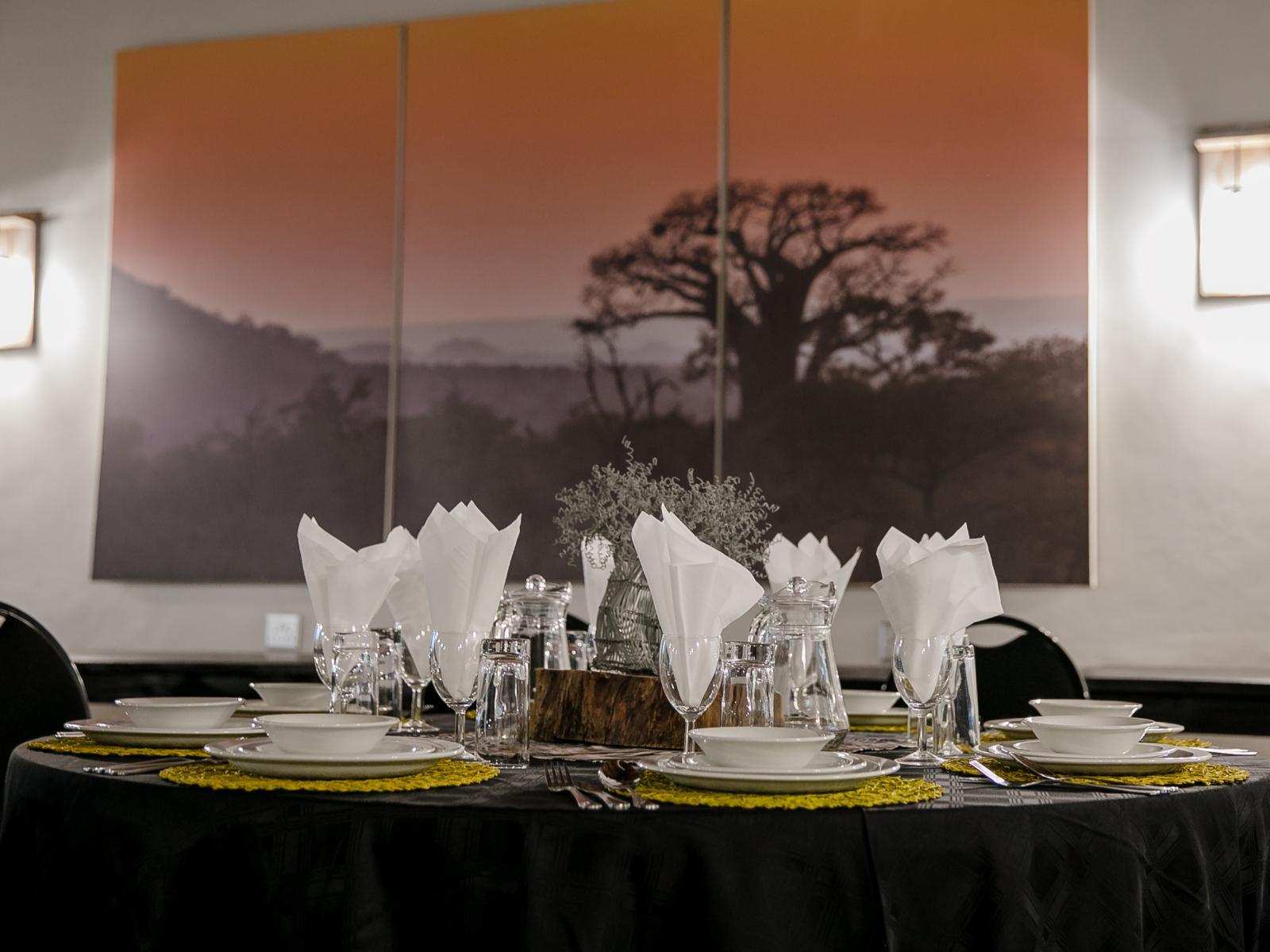 Beautiful lush lawn and huge trees on the banks of the Sabie River. The River Lapa can accommodate 50 guests and the Big Hall up to 150 guests.