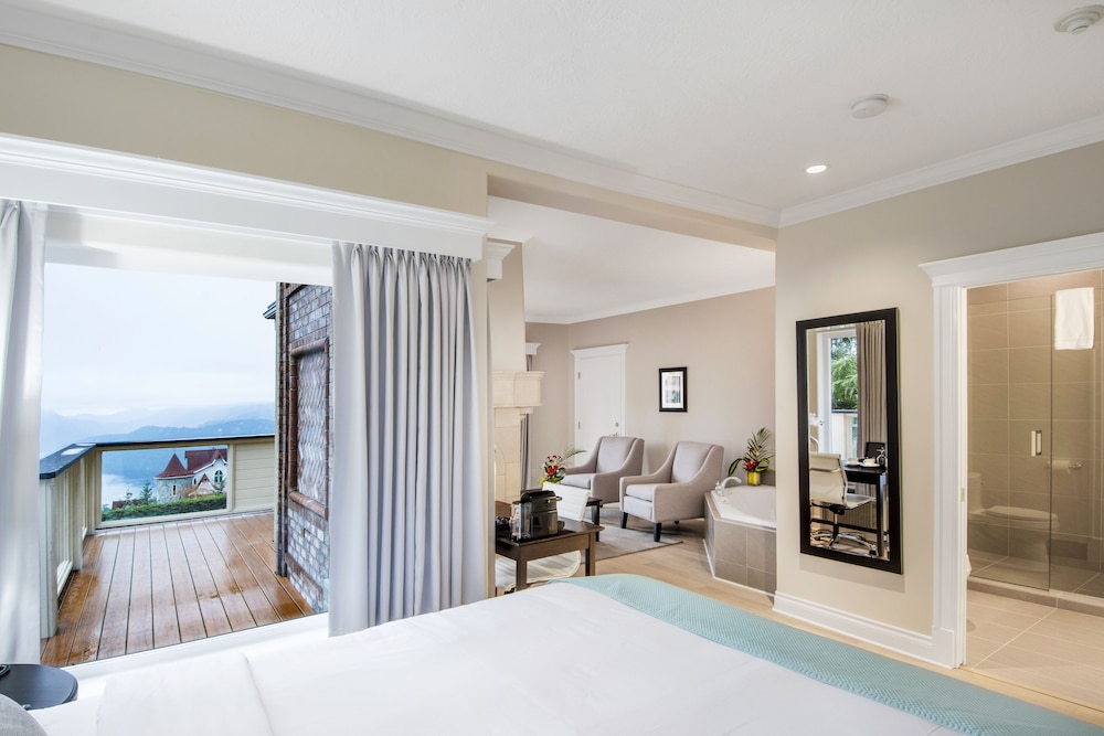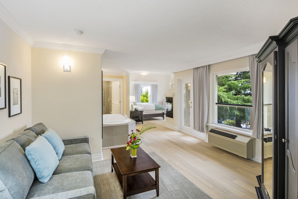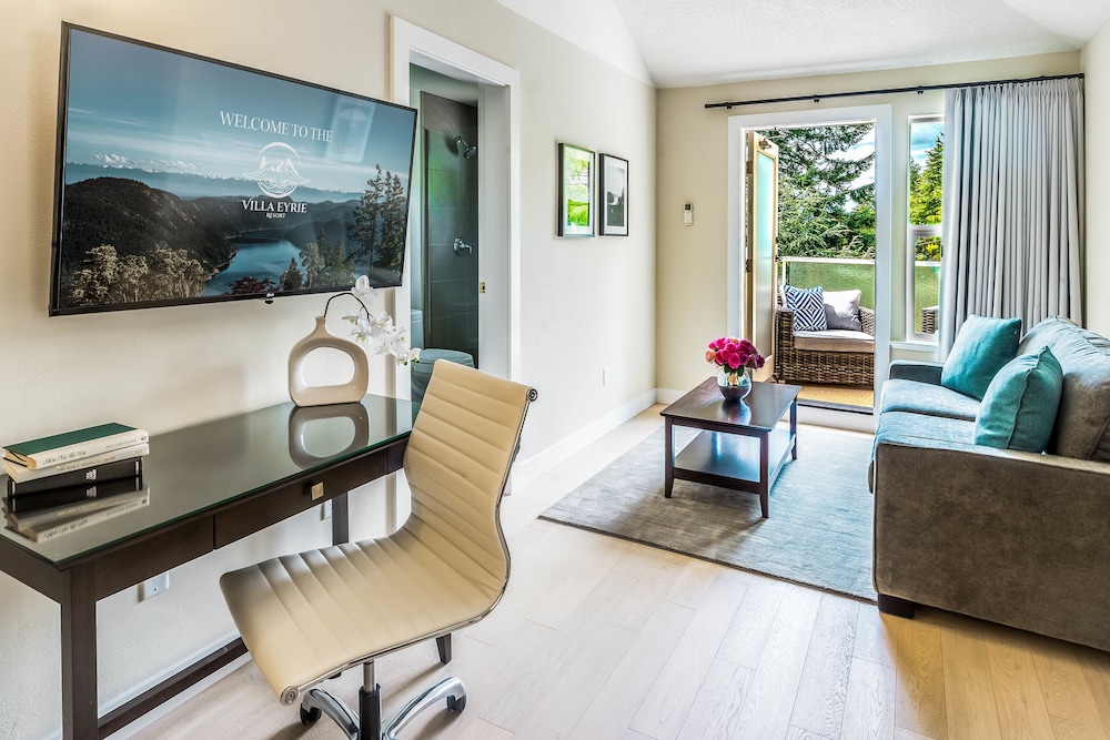 Offering a spa centre and mineral pool Villa Eyrie Resort is situated on top of the Malahat Summit and is overlooking the Pacific Ocean and Finlayson Arm inlet. Room offer private balconies with scenic views.A flat-screen TV and an in-room fireplace are offered in the rooms at Vila Eyrie Resort. All rooms are fitted with a private bathroom with bathrobes slippers and free toiletries.You will find a 24-hour front desk at the property. Guests can enjoy the on-site restauran as well as various activities in the surroundings such as golfing fishing and canoeing. The property also offers views of the Olympic Mountains and Mount Baker.The nearest airport is Victoria International Airport 42 minutes' drive away. The city of Victoria is approximately 30 minutes' drive away.