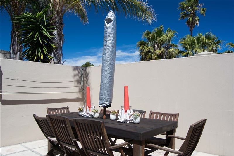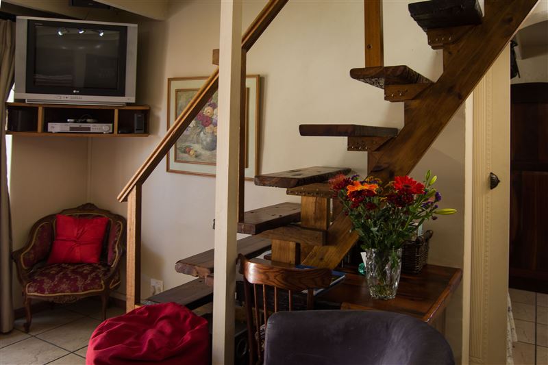 This three bedroom apartment with two bathrooms is located just 2 km from the beach in Melkbosstrand on the charming West Coast. The unit is fully equipped for self-catering and sleeps up to six people.The apartment contains satellite TV, bedding, towels, a dishwasher, washing machine and tumble dryer, and also features a courtyard with braai facilities. The two level unit offers one bedroom and bathroom downstairs and two loft rooms with a bathroom upstairs. The stairs leading to loft rooms are steep and not suitable for toddlers or the elderly. The 2 loft rooms share a bathroom - walk th
