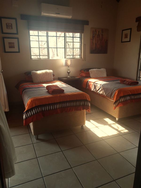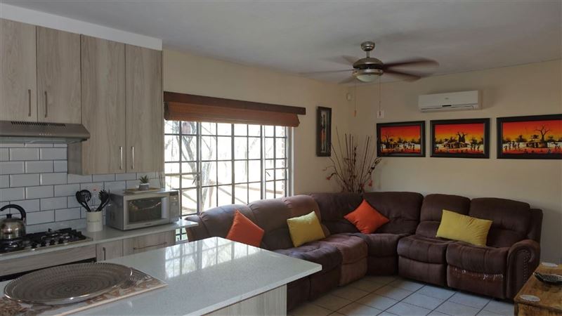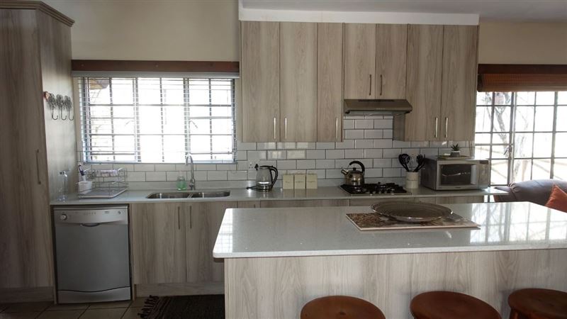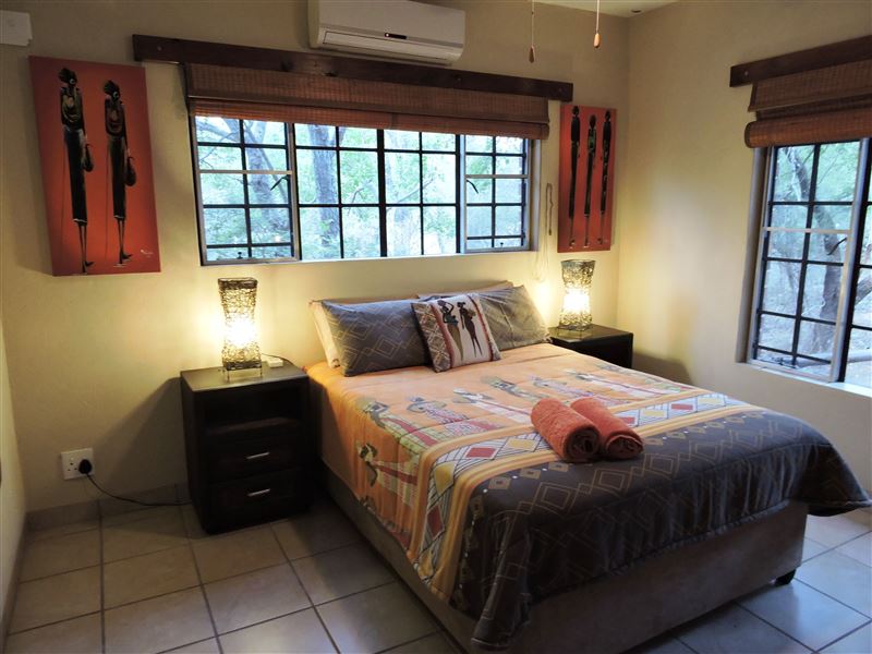 African Wild is a lovely three-bedroom self-catering home, located in the Marloth Park Conservancy, which border the Kruger National Park. The house is within walking distance of the Crocodile River and various game species can often be spotted visiting the river. There are also two watering holes where the free-roaming animals come to drink inside the conservancy.African Wild can comfortably accommodate up to six guests, and contains three bedrooms, three bathrooms, a kitchen, lounge and dining area. The first and second bedrooms each contain a double bed, and the third bedroom