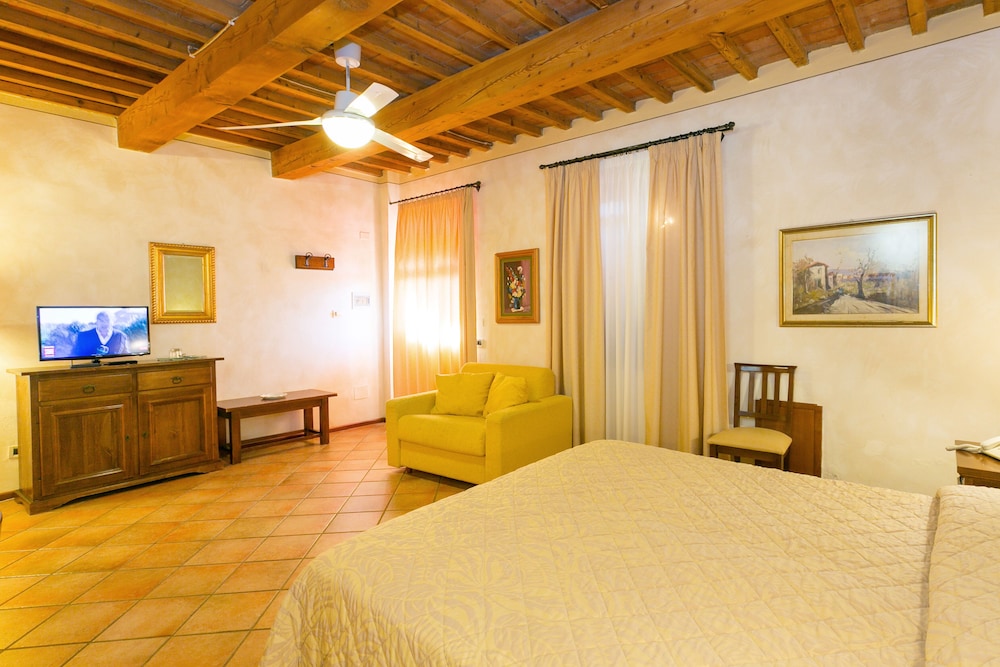 Set in a 25 hectare garden with vineyards around Cecina Agrihotel Elisabetta boasts a swimming pool a sun terrace with panoramic views of the countryside and homegrown wine olive oil and grappa liqueur.Breakfast is a sweet and savoury buffet that includes homemade cakes and bread cold cuts eggs and bacon. At the gourmet restaurant you can enjoy local specialities.The rooms feature satellite TV a minibar and a bathroom with hairdryer and free toiletries. They have dark wood Tuscan-style furnishings.If you are feeling active there are 2 tennis courts a ping pong table and wine tasting tours can be booked at reception.The beach can be reached in 10 minutes by car while Cecina Train Station is 7 km away and a bus to/from the station stops in front of the hotel. A free shuttle service to/from the train station is available on request.