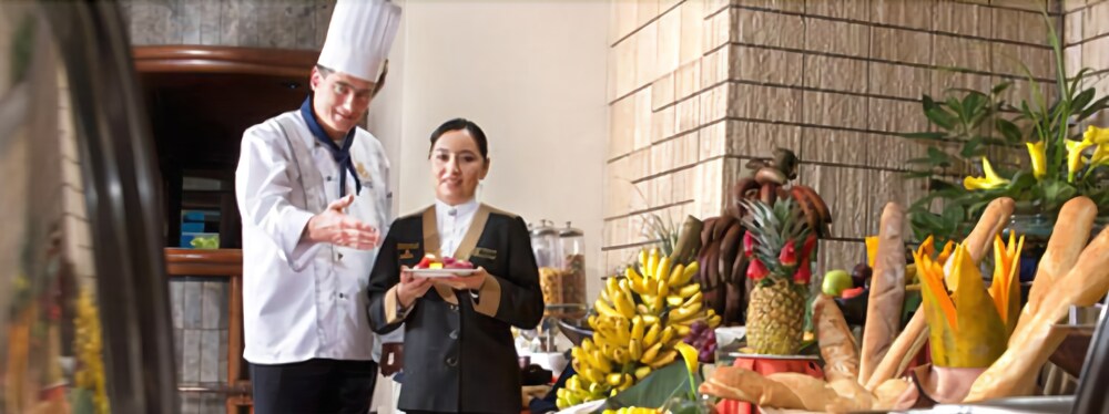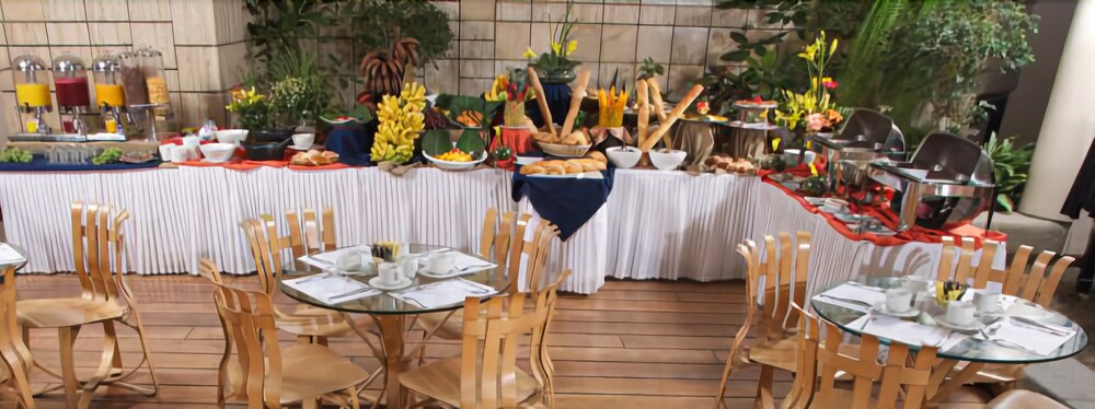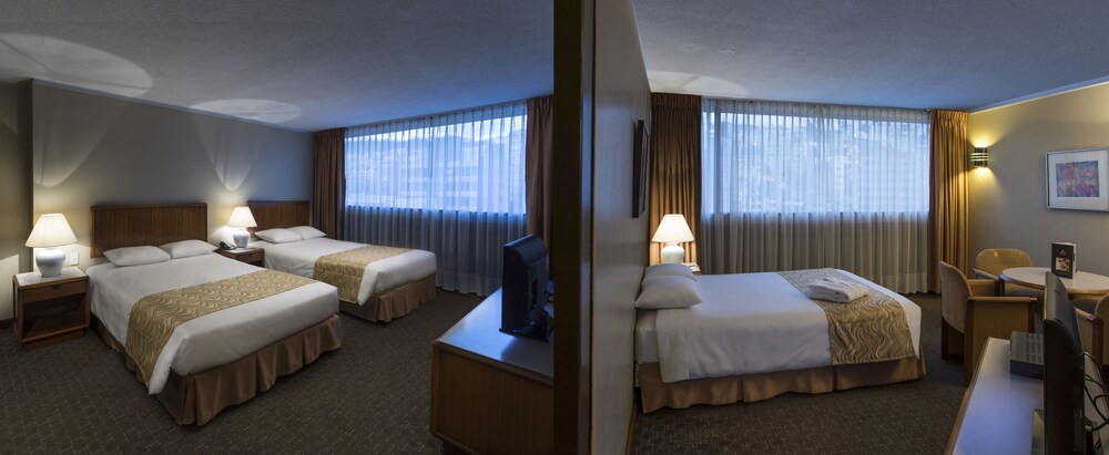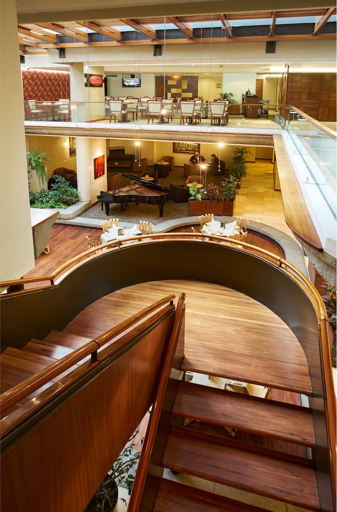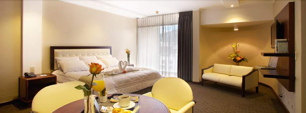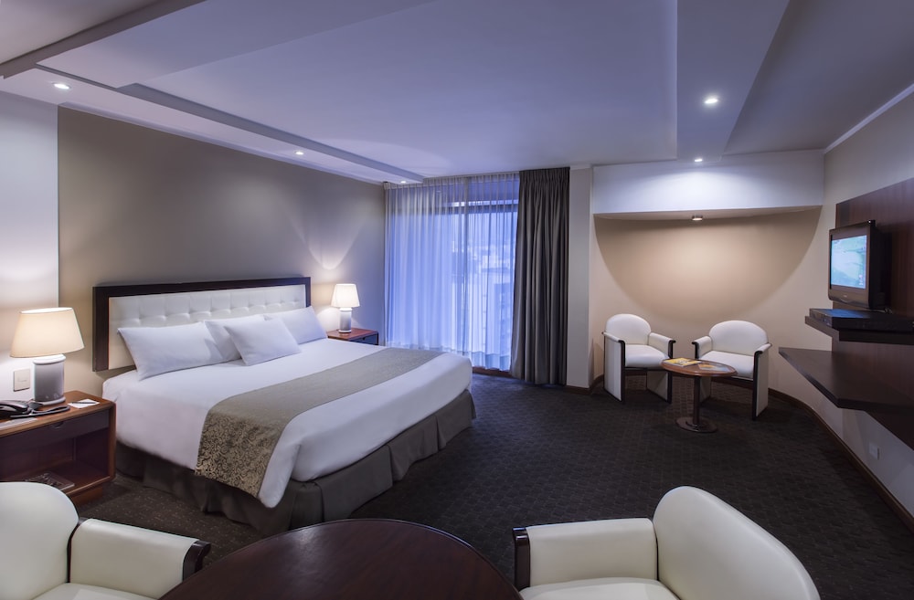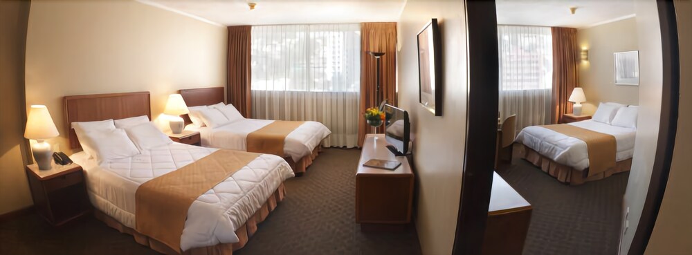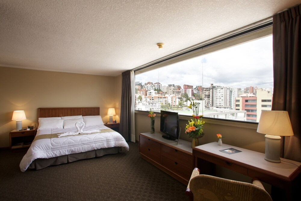 This hotel is located in the financial district of Quito, an area with big shopping malls, entertainment venues and cultural points. The airport is at a distance of 10 minutes by car and the beautiful valleys of Los Chillos and Cumbayá are 15 minutes away by car.The hotel offers a piano bar, a patio café and a restaurant. There is also a boutique, an art gallery and a business center including conference room, computers, fax and copy machine. Other amenities are gym, parking, elevator, room service and laundry service.The guest rooms are equipped with internet access, telephone, TV, safe and private bathroom with hair dryer and telephone.Address: Av. 6 de Diciembre N34-120, Quito, Ecuador.