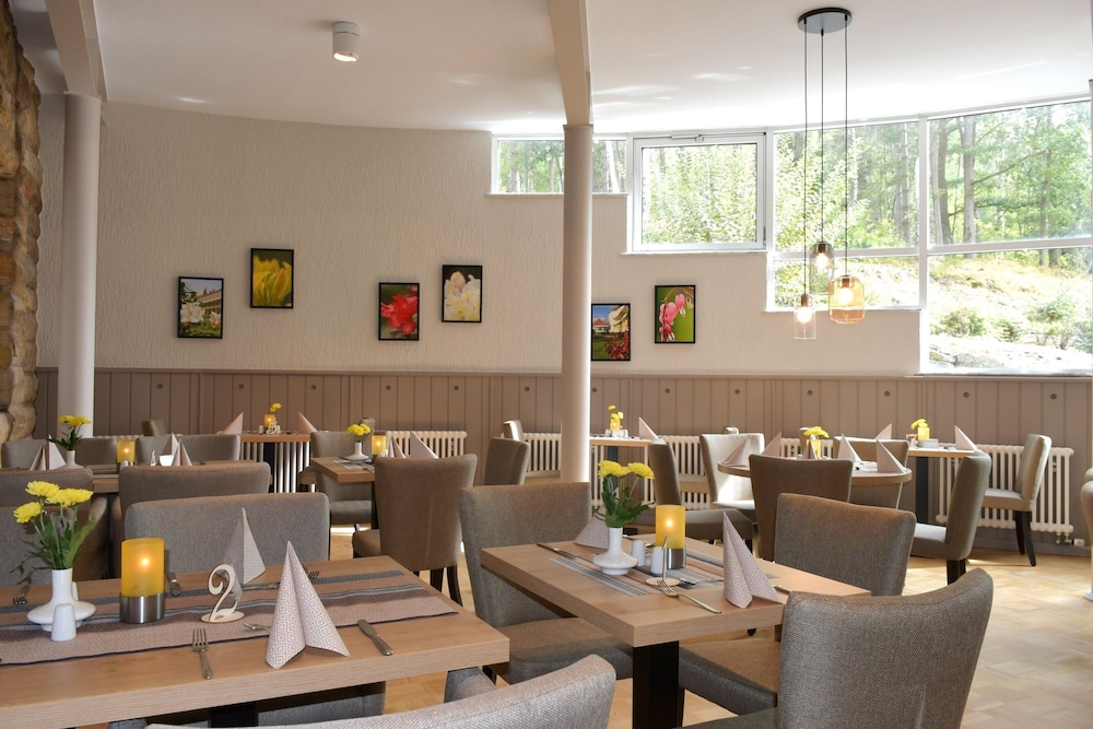 Featuring free WiFi throughout the property Hotel Am Burgholz offers pet-friendly accommodation in Tabarz. The hotel has a swimming pool sauna and fitness centre and guests can enjoy a drink at the bar. Free private parking is available on site.All rooms include a flat-screen TV. Some units have a seating area to relax in after a busy day. Certain units feature views of the mountains or garden. For your comfort you will find free toiletries and a hair dryer.This hotel has ski storage space and ski equipment hire is available. Guests can enjoy various activities in the surroundings including skiing and cycling. The hotel also offers bike hire. The nearest airport is Erfurt Airport 32 km from the property.