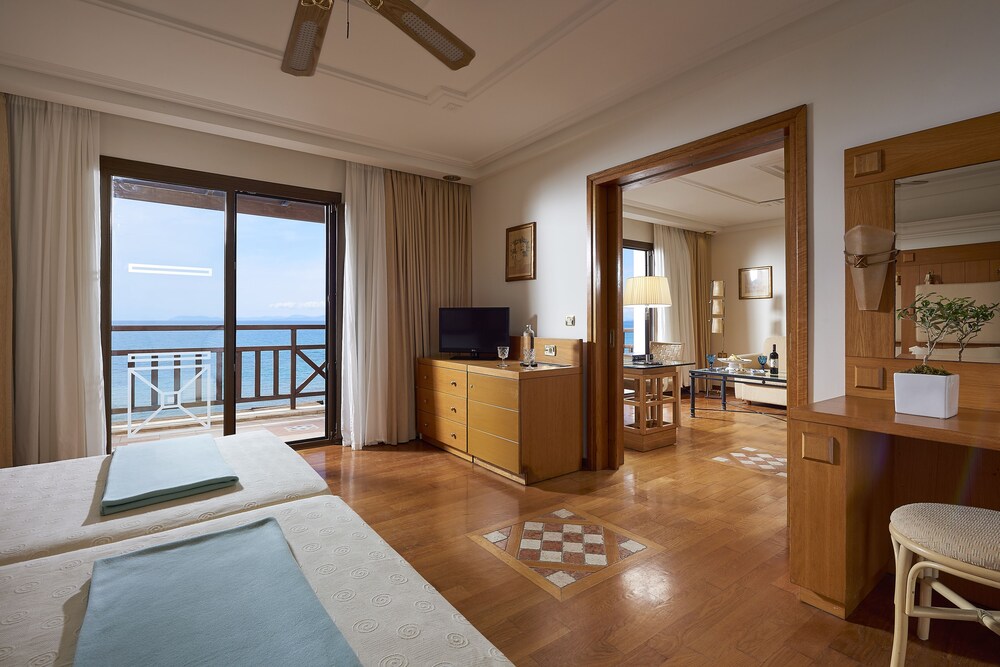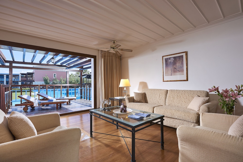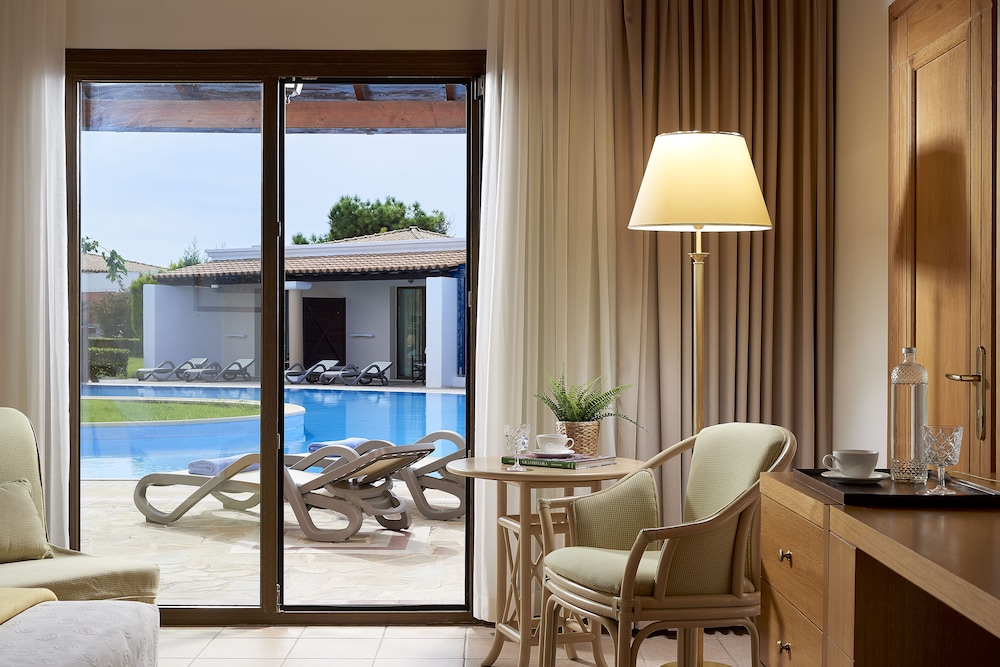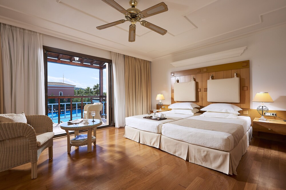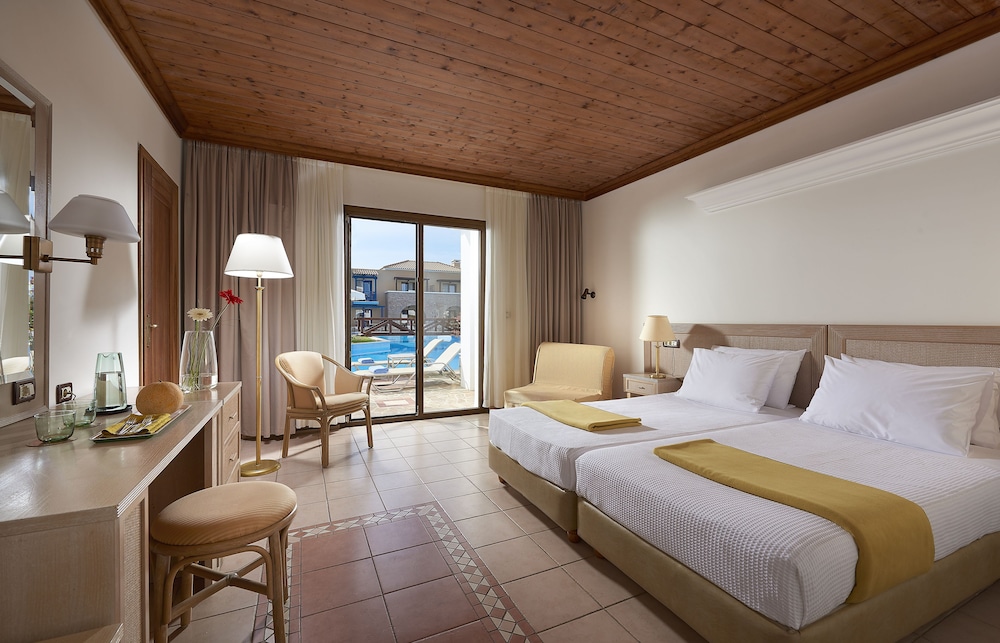 The region of Ilia is criss-crossed with roads, each one leading to something interesting: be it an ancient temple, a Byzantine monastery, a Frankish castle, a splendid mountain or an endless sandy beach.This complex consists of bungalows, suites and rooms of unique beauty, all in excellent condition. It is a small kingdom of harmony extending across the golden sand, next to scores of swimming pools and green-clad gardens where guests can relax. There are 143 rooms and 63 suites, and guests are welcomed into a reception hall with 24-hour check-in service. Facilities at this air-conditioned establishment include currency exchange, a small shop, a hairdressing salon, TV lounge and, for a fee, WLAN Internet access. For dining and drinks, guests can enjoy the hotel's own café, bar and restaurant. Room and laundry services are on offer as well (fees apply for both). Guests may hire a bicycle (for a fee), and children will enjoy the kids' club and playground.The rooms and suites are housed in buildings and in bungalow complexes. All rooms offer luxurious amenities to make each guest's stay a unique experience. Each room and suite comes with a private bathroom with a hairdryer, as well as a direct dial telephone, satellite/cable TV, Internet access, a mini fridge, individually regulated air conditioning, a safe and a balcony or terrace.
