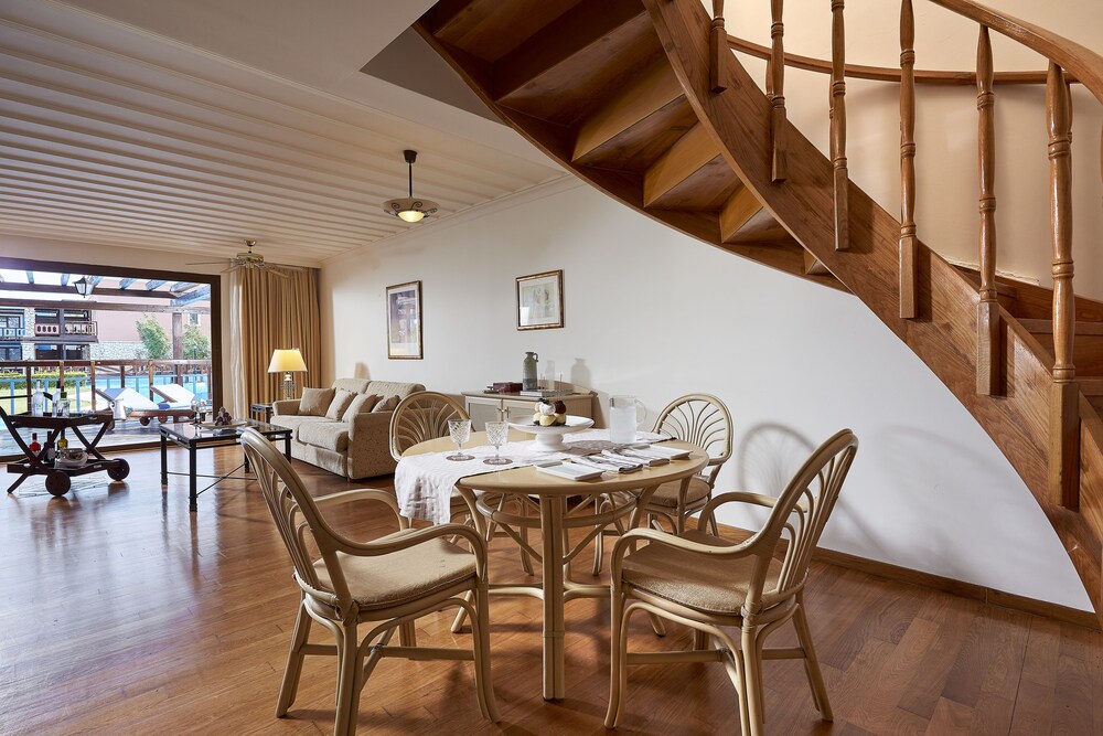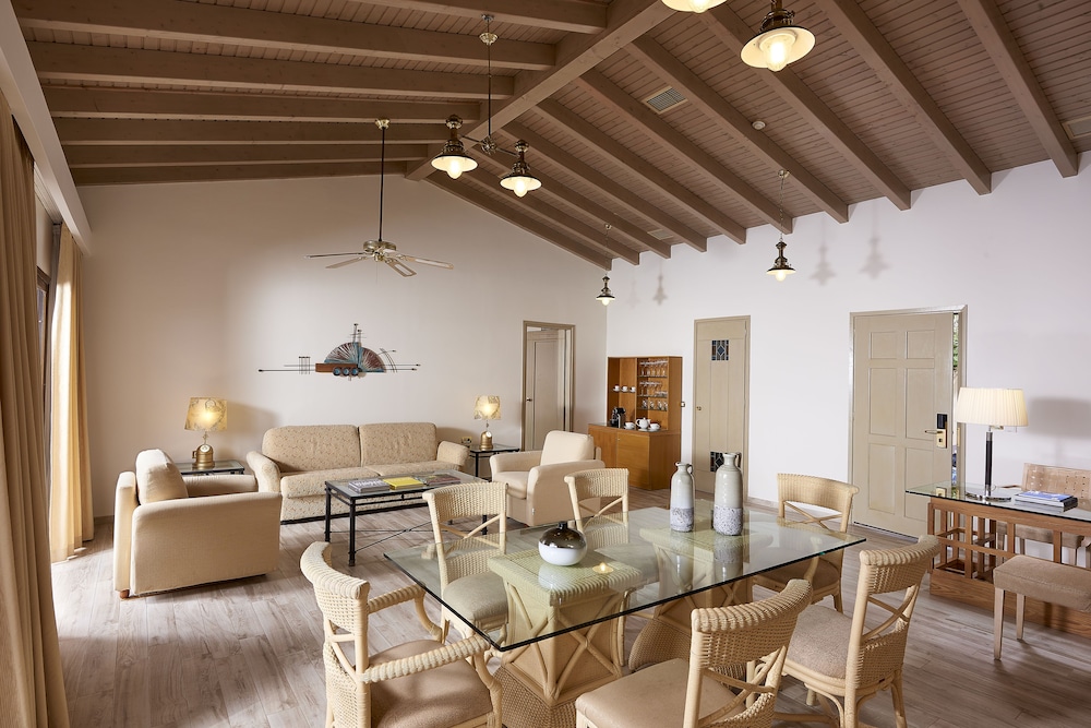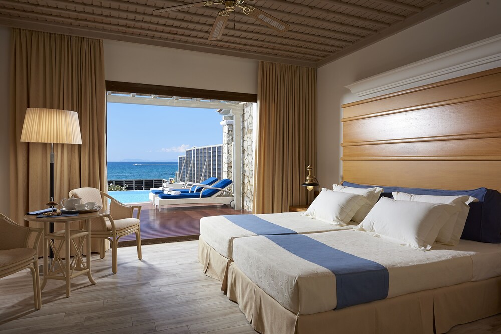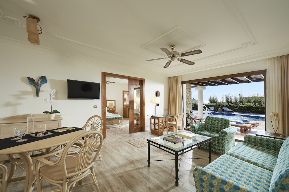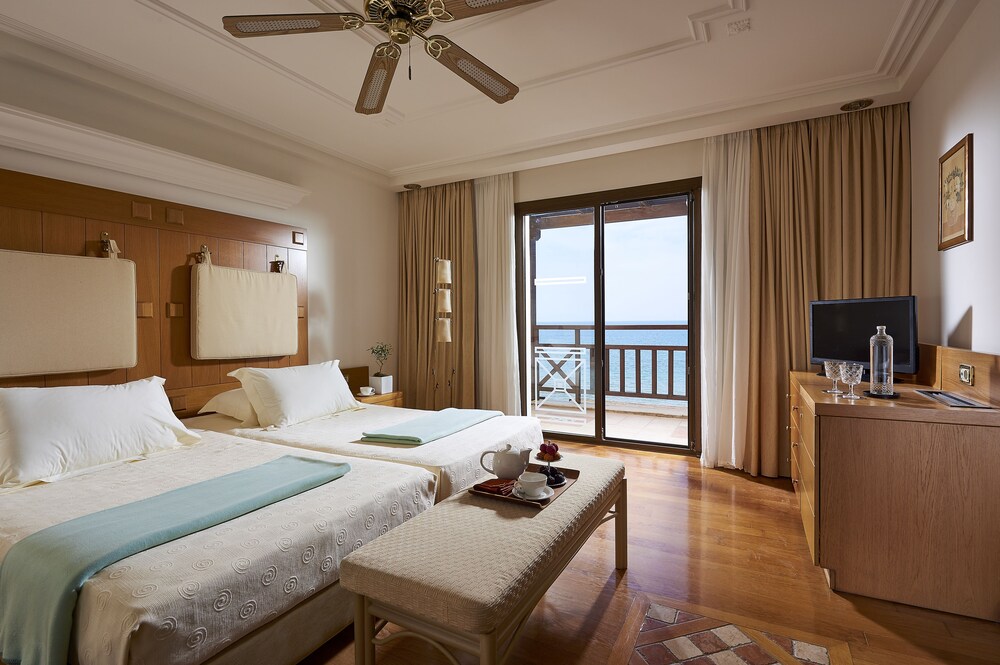 The region of Ilia is criss-crossed with roads, each one leading to something interesting: be it an ancient temple, a Byzantine monastery, a Frankish castle, a splendid mountain or an endless sandy beach.This complex consists of bungalows, suites and rooms of unique beauty, all in excellent condition. It is a small kingdom of harmony extending across the golden sand, next to scores of swimming pools and green-clad gardens where guests can relax. There are 143 rooms and 63 suites, and guests are welcomed into a reception hall with 24-hour check-in service. Facilities at this air-conditioned establishment include currency exchange, a small shop, a hairdressing salon, TV lounge and, for a fee, WLAN Internet access. For dining and drinks, guests can enjoy the hotel's own café, bar and restaurant. Room and laundry services are on offer as well (fees apply for both). Guests may hire a bicycle (for a fee), and children will enjoy the kids' club and playground.The rooms and suites are housed in buildings and in bungalow complexes. All rooms offer luxurious amenities to make each guest's stay a unique experience. Each room and suite comes with a private bathroom with a hairdryer, as well as a direct dial telephone, satellite/cable TV, Internet access, a mini fridge, individually regulated air conditioning, a safe and a balcony or terrace.