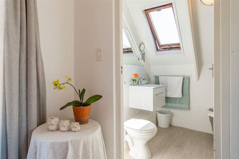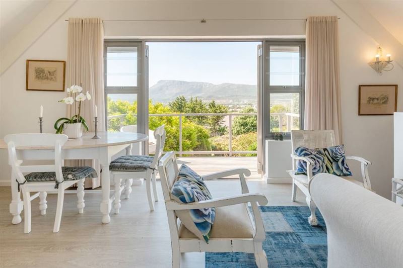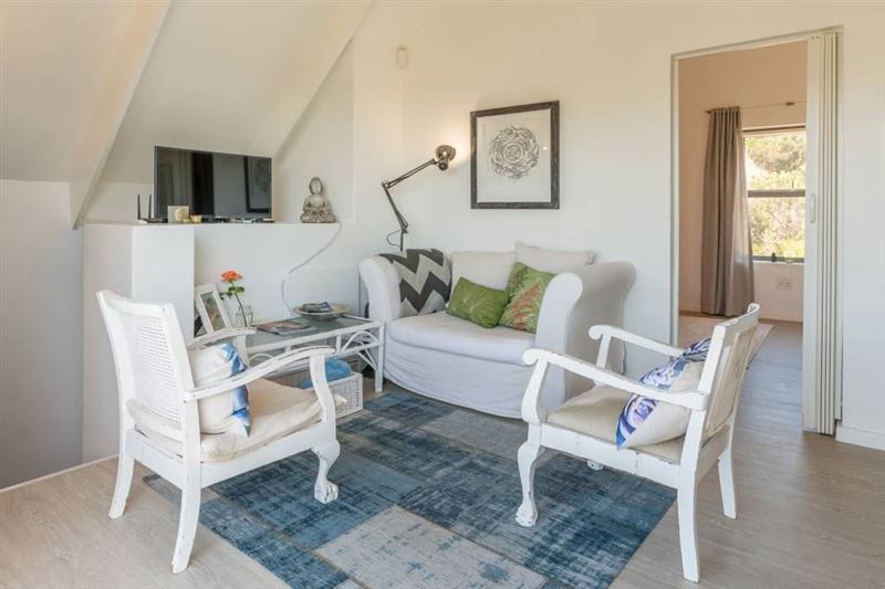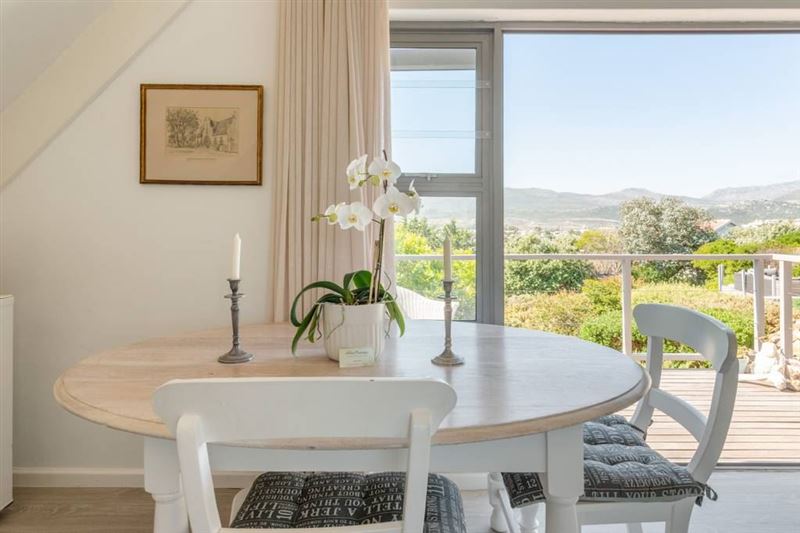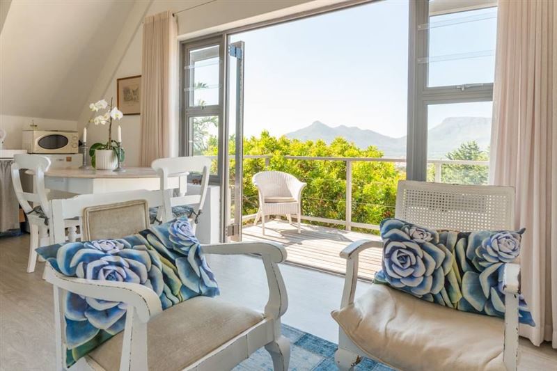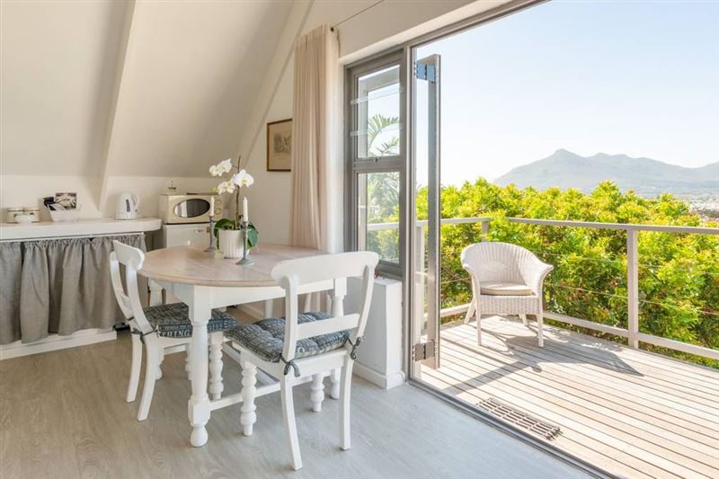 The cottage is set in a lovely indigenous garden. It has a queen size bed and lovely en suite bathroom. A separate kitchen and lounge with magnificent view and deck for a sun downer.