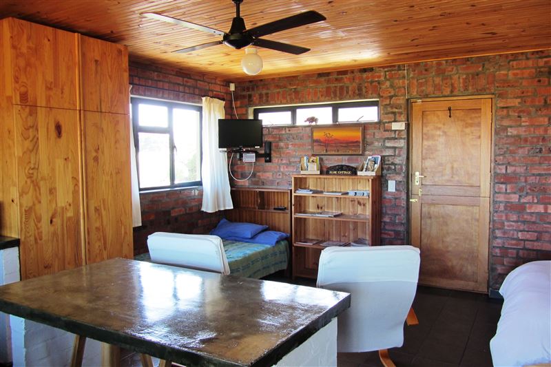Resting on the coastal plateau between Slangkop Mountain and Long Beach, where the powerful waves from the Atlantic Ocean rise up over rocky reefs, lies the secluded and eco-friendly Aloe Cottage. Surrounded by nature and overlooking a large open space lined with Milkwood thickets, Skilpadsvlei and distant ocean views, this well appointed studio-style, self-catering accommodation provides two guests with all that is needed for a peaceful and restorative getaway.The cottage is comfortably furnished and offers a full DStv bouquet and Wi-Fi access. There are braai facilities and a f