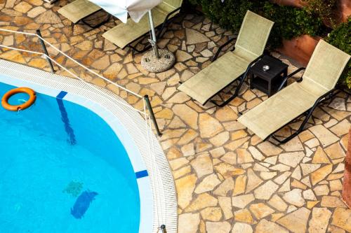 Featuring an outdoor pool with hot tub Althaia is located just above Trichonida Lake 3 km from Thermo Town. It offers elegant accommodation and a bar-restaurant serving Greek cuisine. Free Wi-Fi is available throughout.Decorated in warm colours all air-conditioned rooms open to a balcony with views over the lake or Panaitoliko Mountain. Each includes a flat-screen TV with satellite channels mini fridge and hairdryer.Guests can visit the scenic Trichonida Lake at 3 km from Althaia. Mega Dentro village with St. Kosmas Monastery is at 5 km while Agrinio Town lies 30 km away. Free private parking is provided on site.