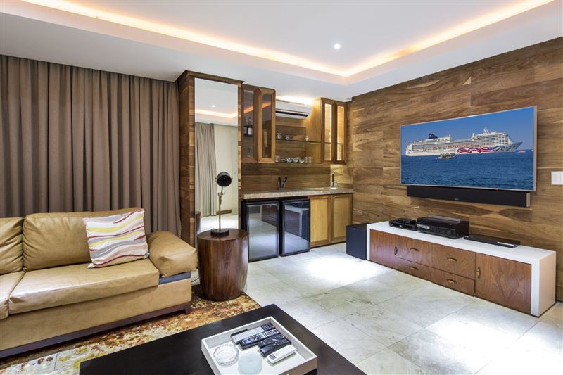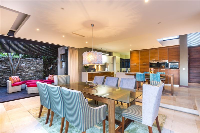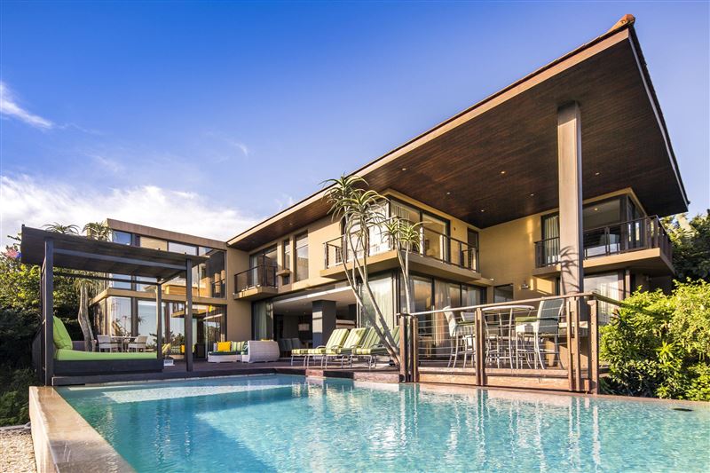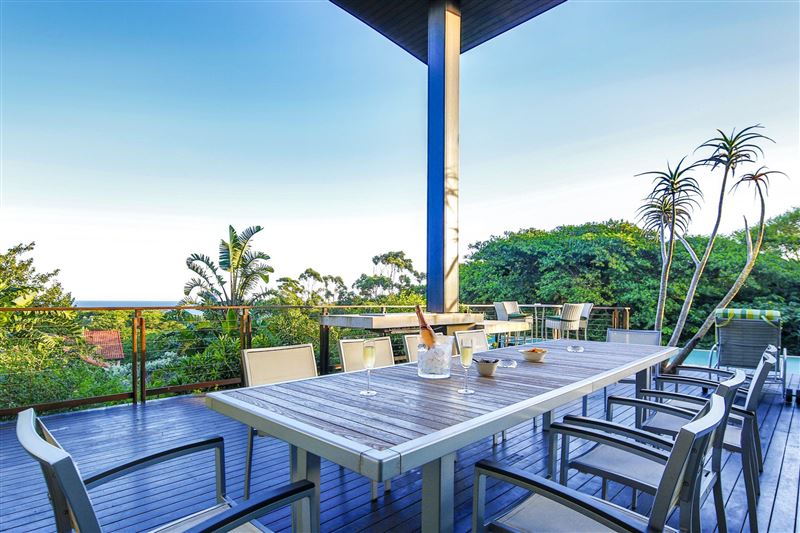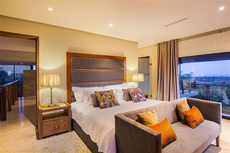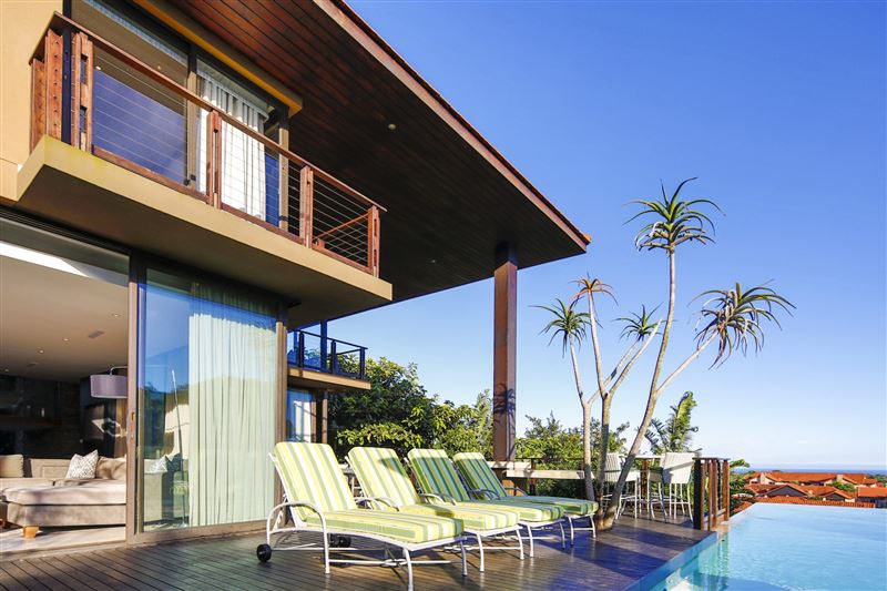 From the minute you enter the front door to this spectacular 4 bedroomed en suite holiday home, you get the feeling of pure indulgence and super luxury! This newly built home has absolutely everything a holiday home has to offer – from luxury, to space, views, a swimming pool and entertainment area. Situated on the top of the hill in Zimbali it allows for spectacular sea views from some of the bedrooms